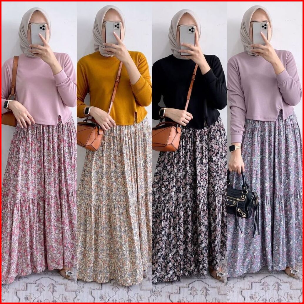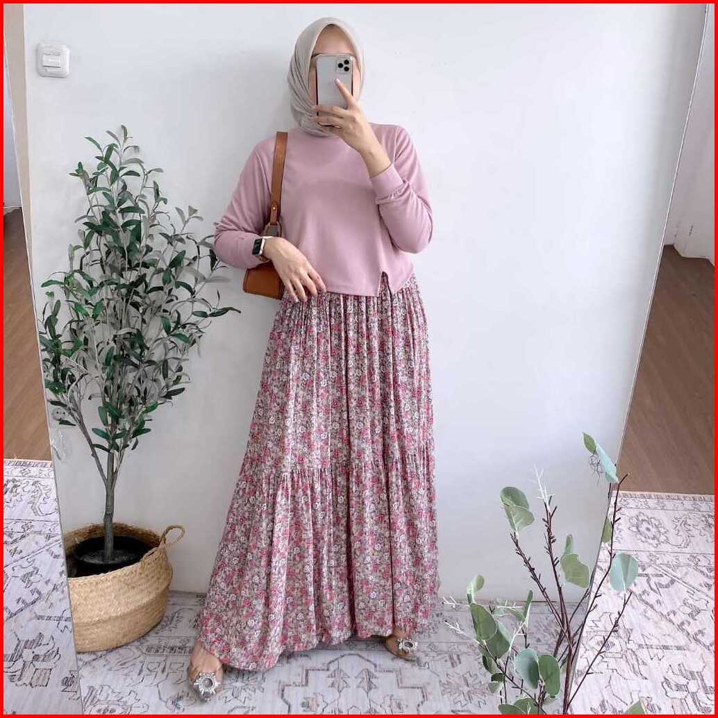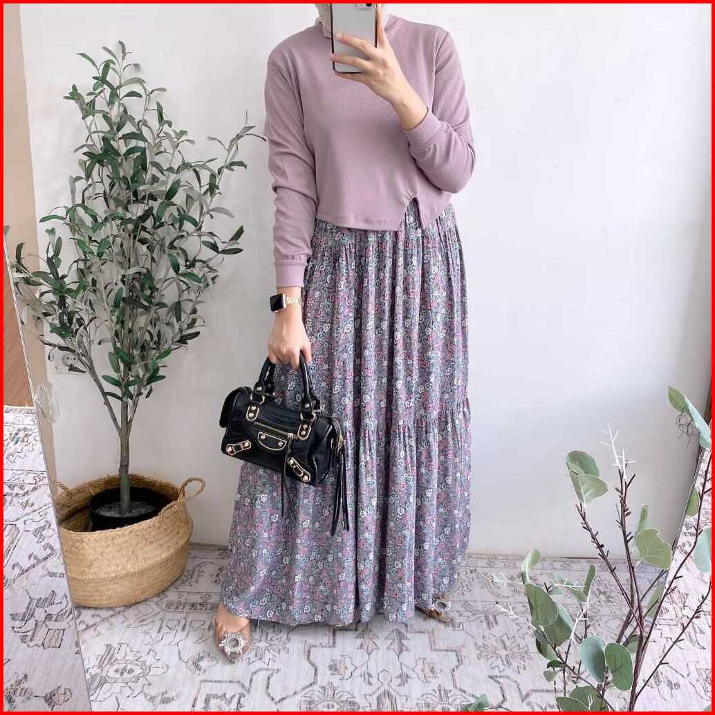 Amel - Gamis Armina Midi Dress Motif Bunga Knit Mix Rayon