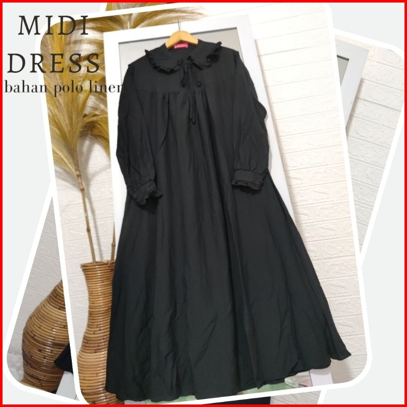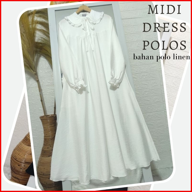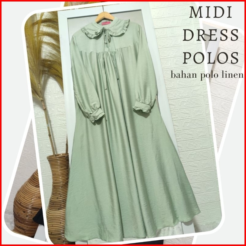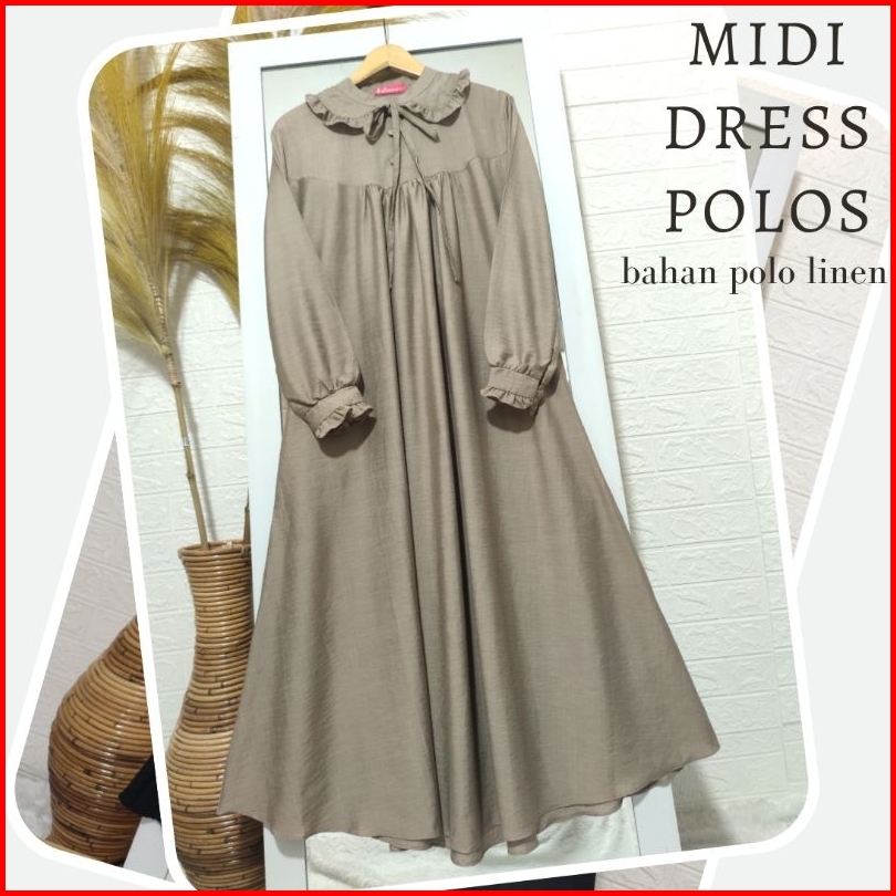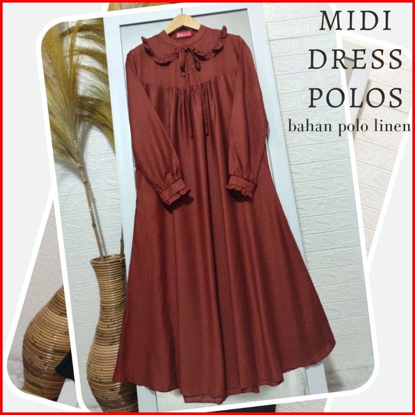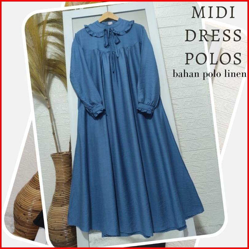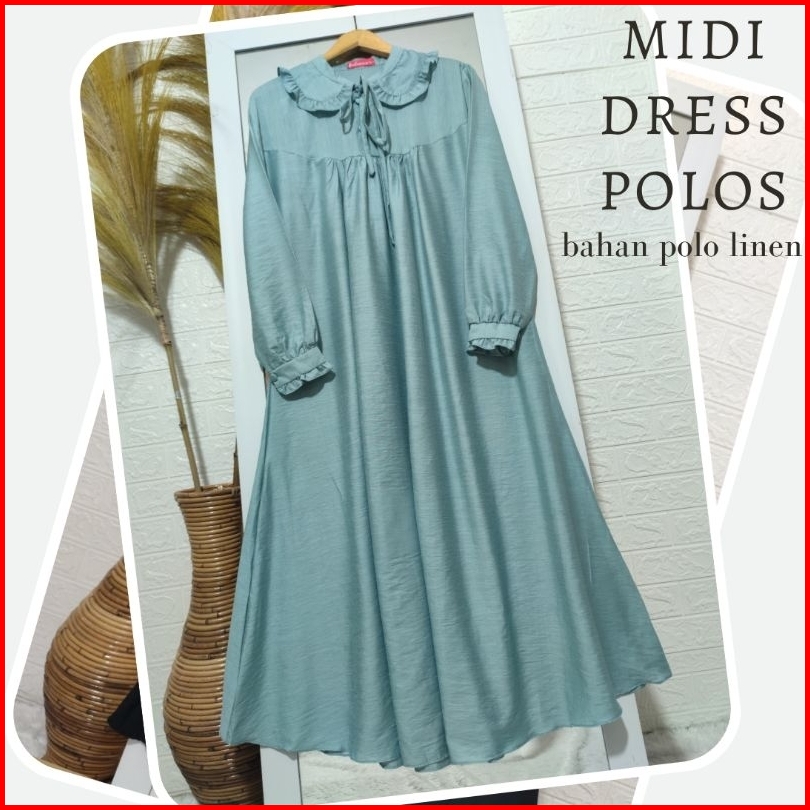 Midi Dress Linen Silk Dress Lebaran 2023 Terbaru Midi Dress Polo Linen Dress Remaja Kekinian