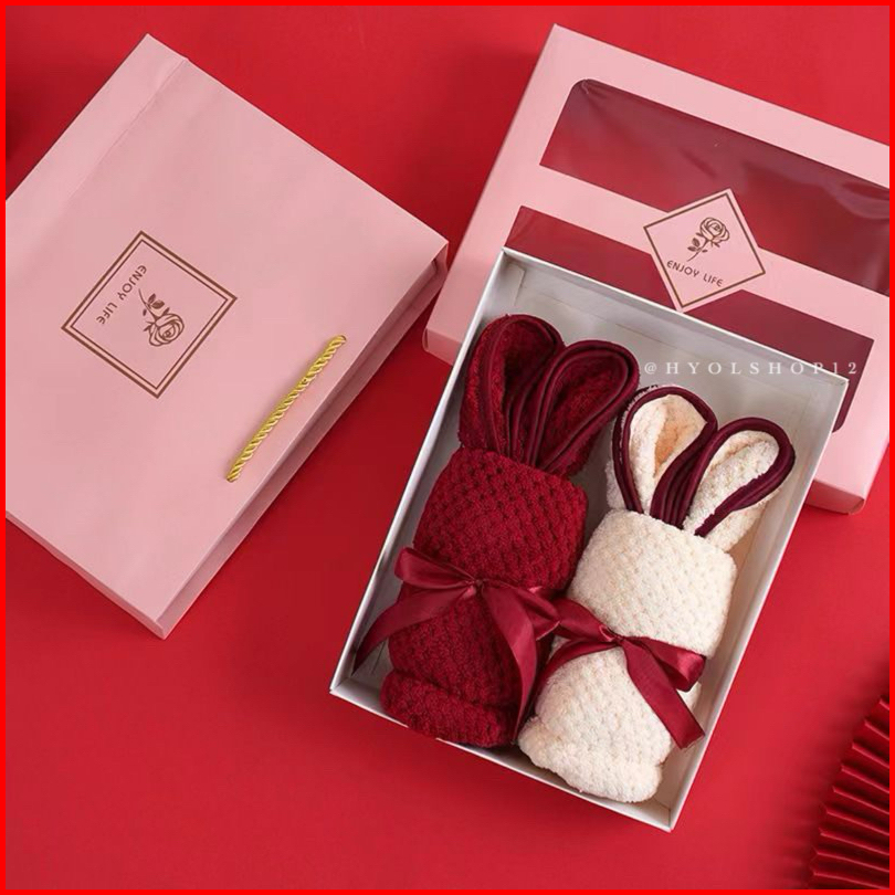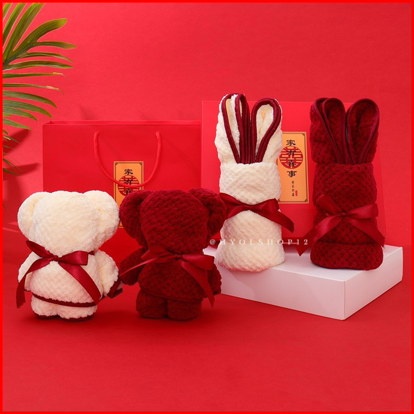 Hy.olshop12 Handuk Mandi Wajah Set 2in1 Motif Bear Rabbit Premium Cotton Tebal Halus Hadiah Souvenir Pernikahan Hampers
