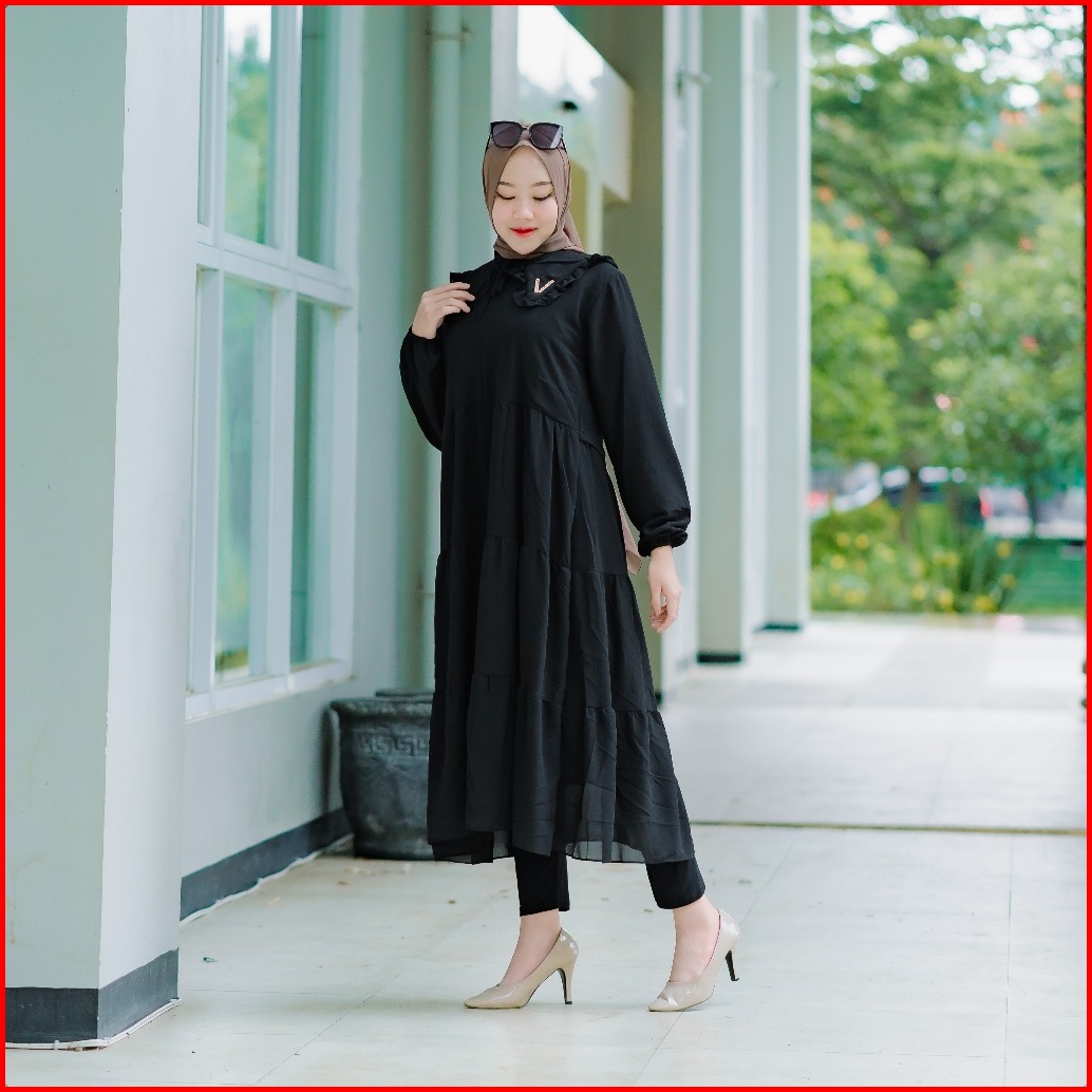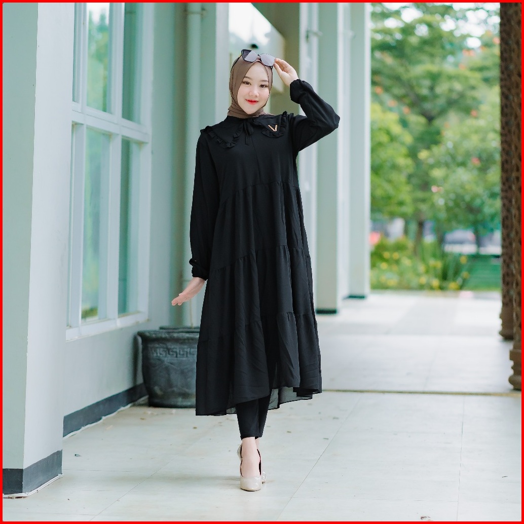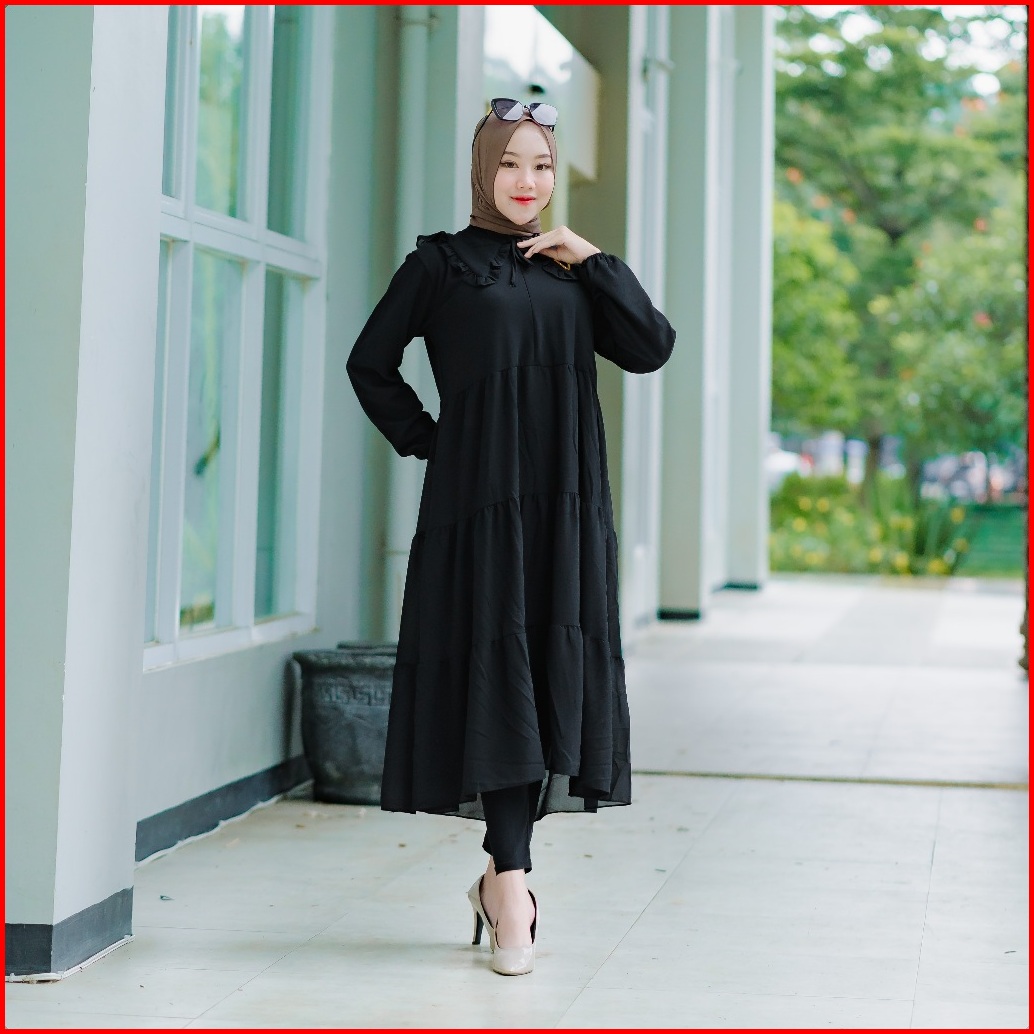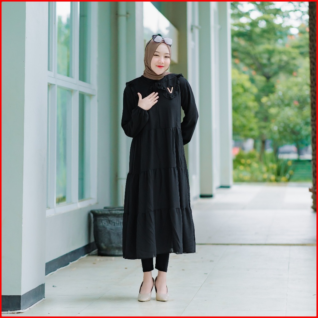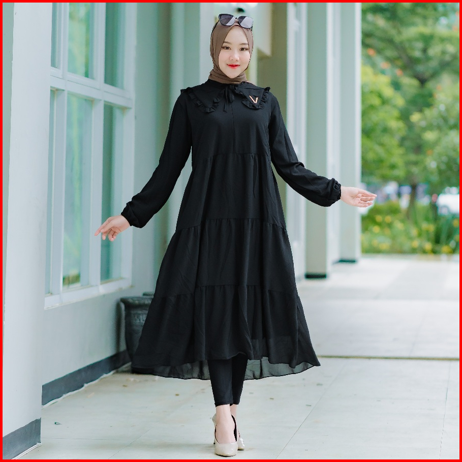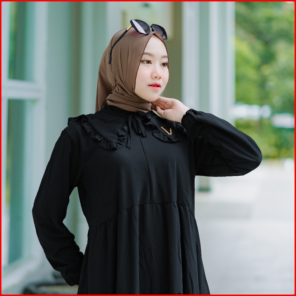 Midi Dress Ceruty Gamis Midi Ceruty Babydoll Full Furing Kerah Terbaru Gamis Putih Polos