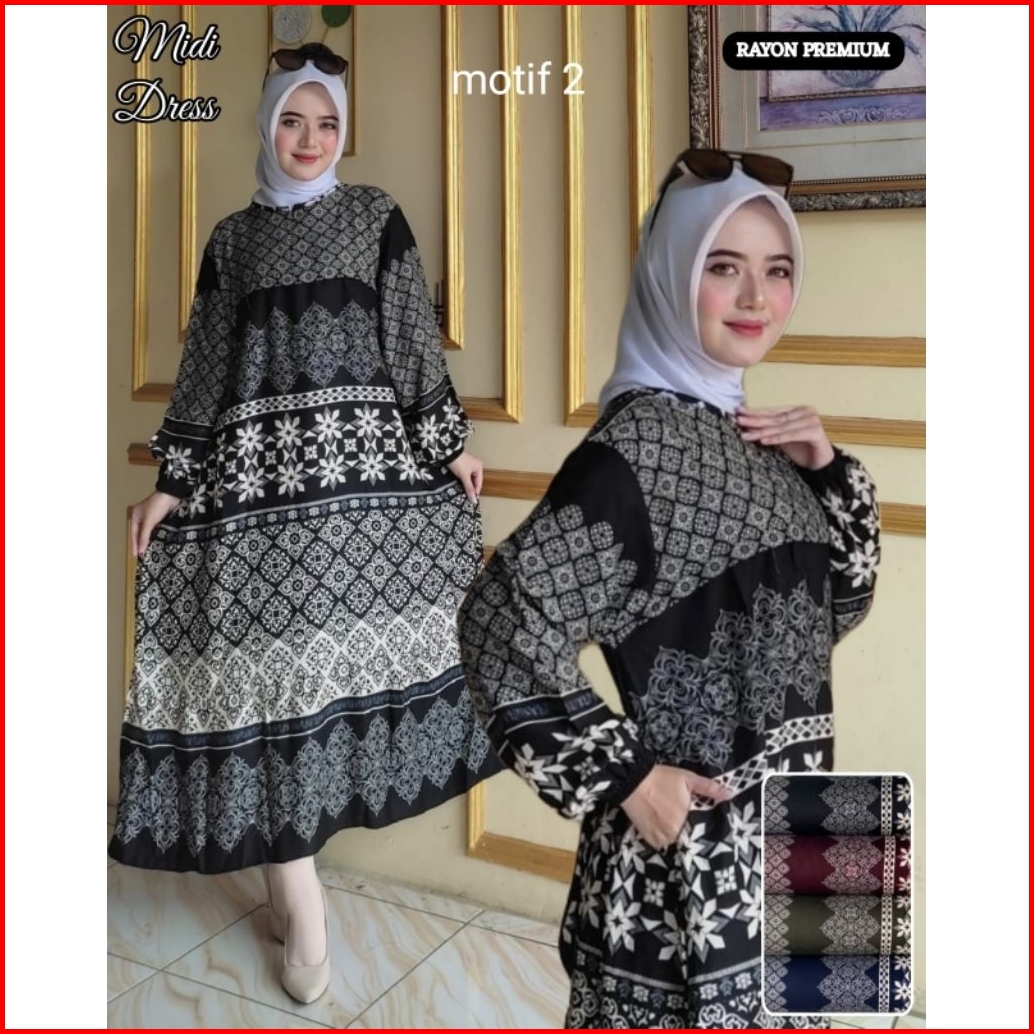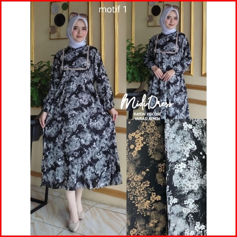 Midi Dress Mini Dress Rayon Diamond Premium Bunga Viral Terusan Tunik Nyaman Busui Friendly Dress