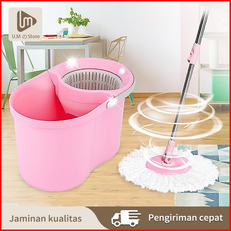 Alat Pel Lantai 2 In 1 Kain Fiber Dengan Ember Spin Mop Mencuci Dan Membilas Alat Pembersih Lantai