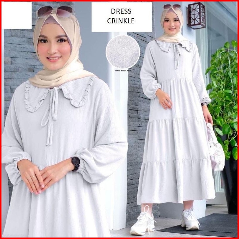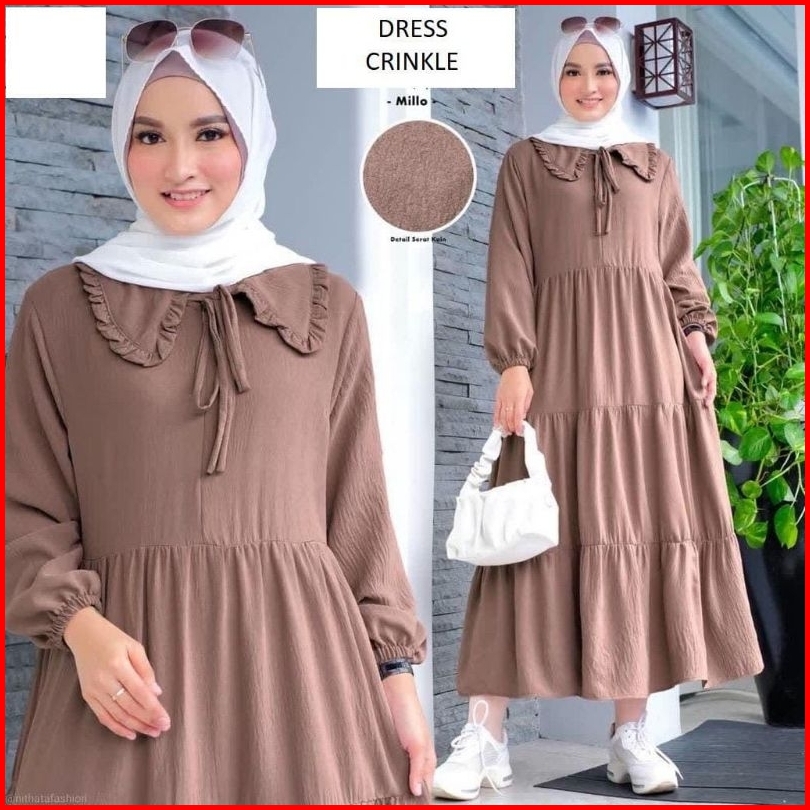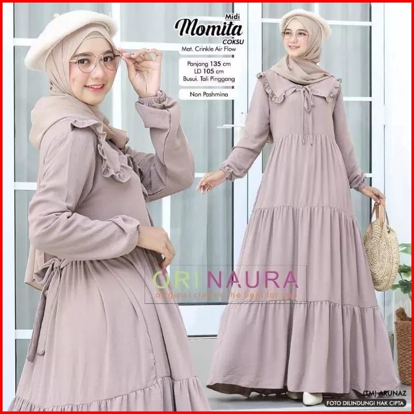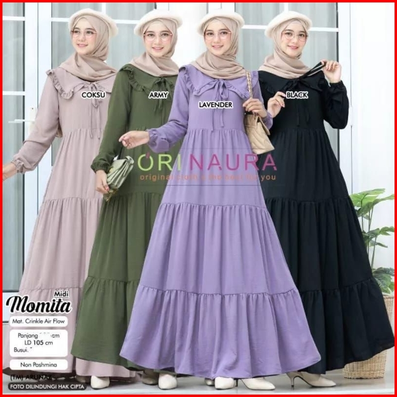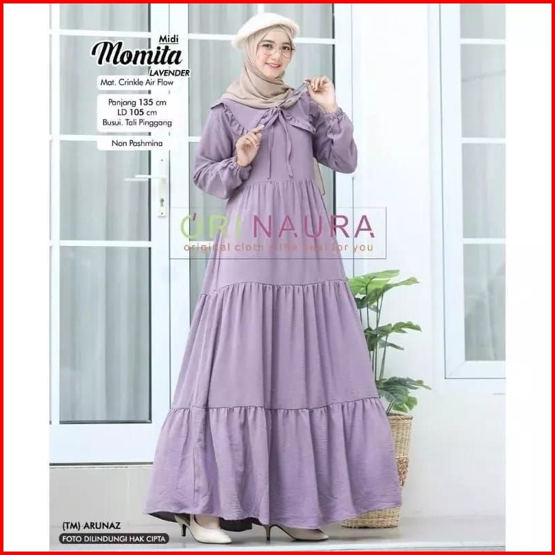 Momita Midi Dress Crinkle Wanita Terlaris Model Terbaru Busui Freindly Kekinian Terbaru Adem Nyaman