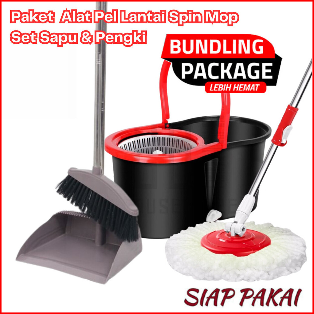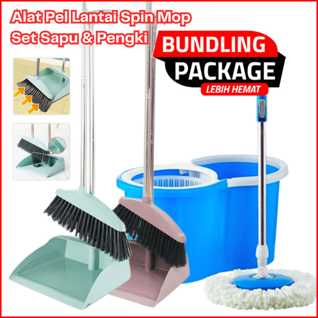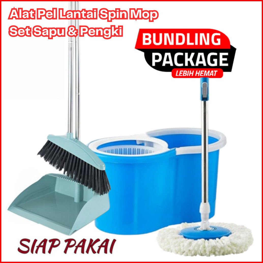 Paket Bundle Hemat Pel Lantai Ultra Mop Aclima Spin Mop Sapu Pengki Set - Package Alat Kebersihan