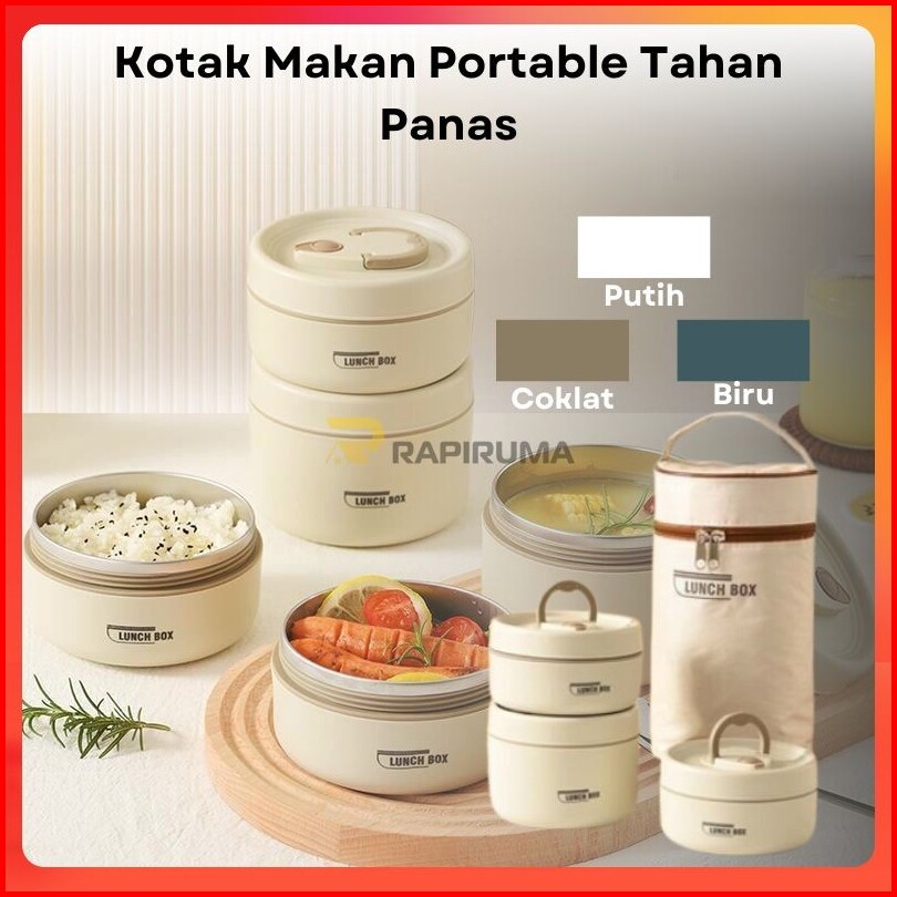 Kotak Makan Portable Tahan Panas Container Sealed Round Stainless Lunch Box Tahan Bocor Tahan Suhu