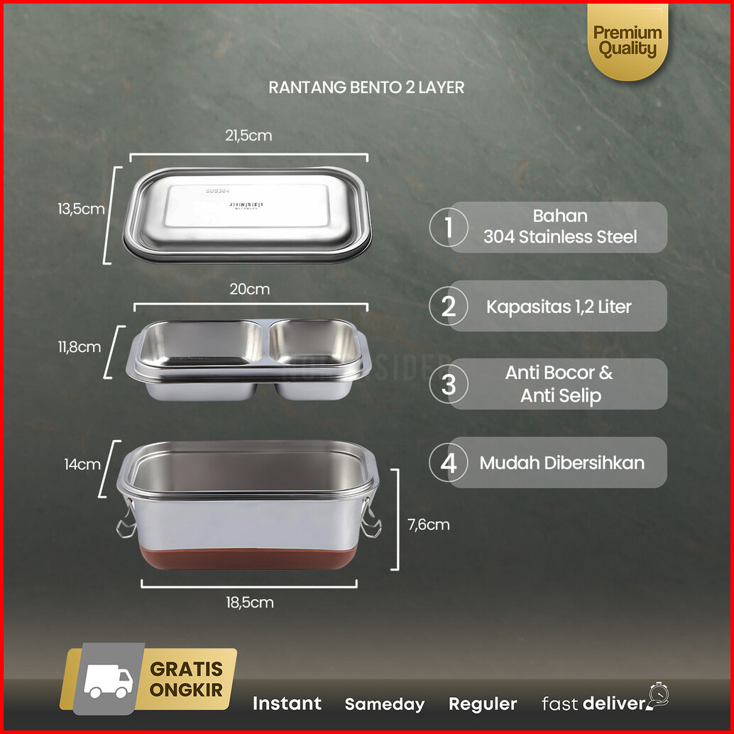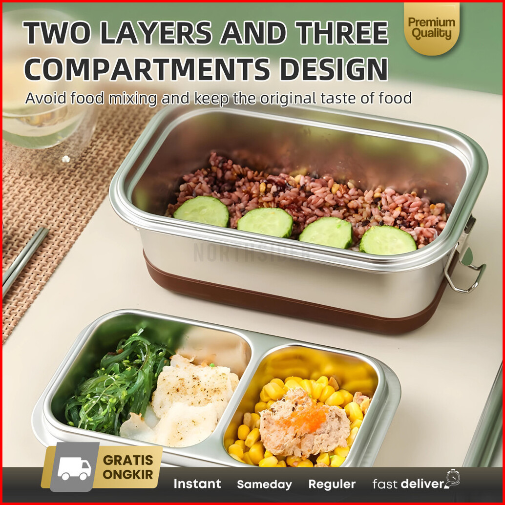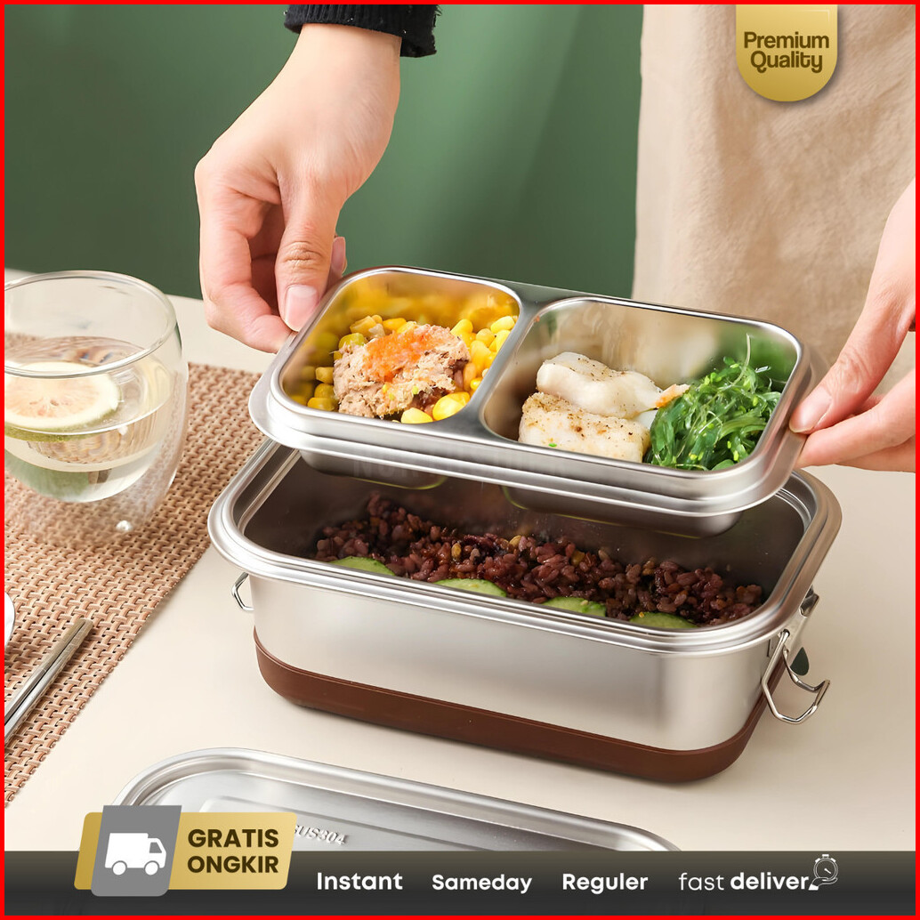 Rantang Bento Kotak Makan Lunch Box 2 Layer Stainless Steel 304 Bgn731