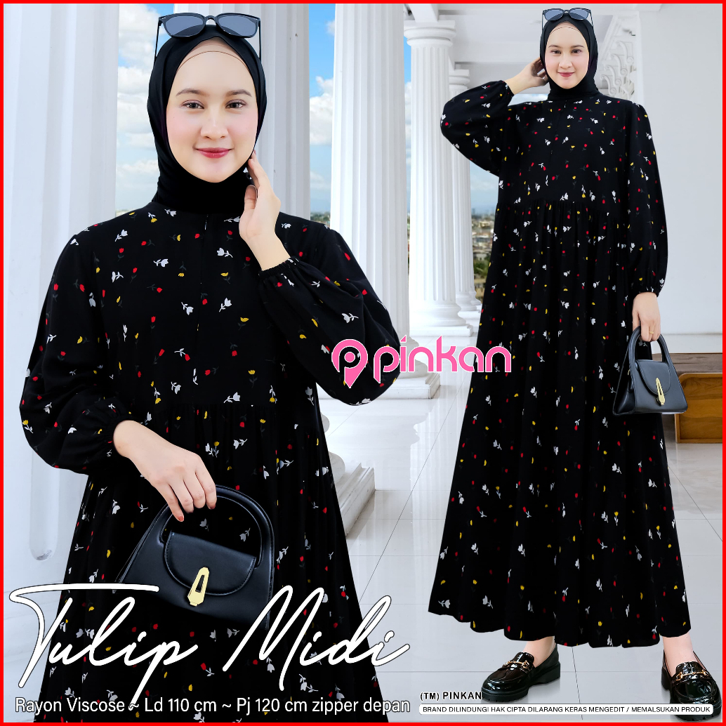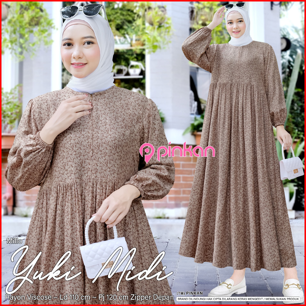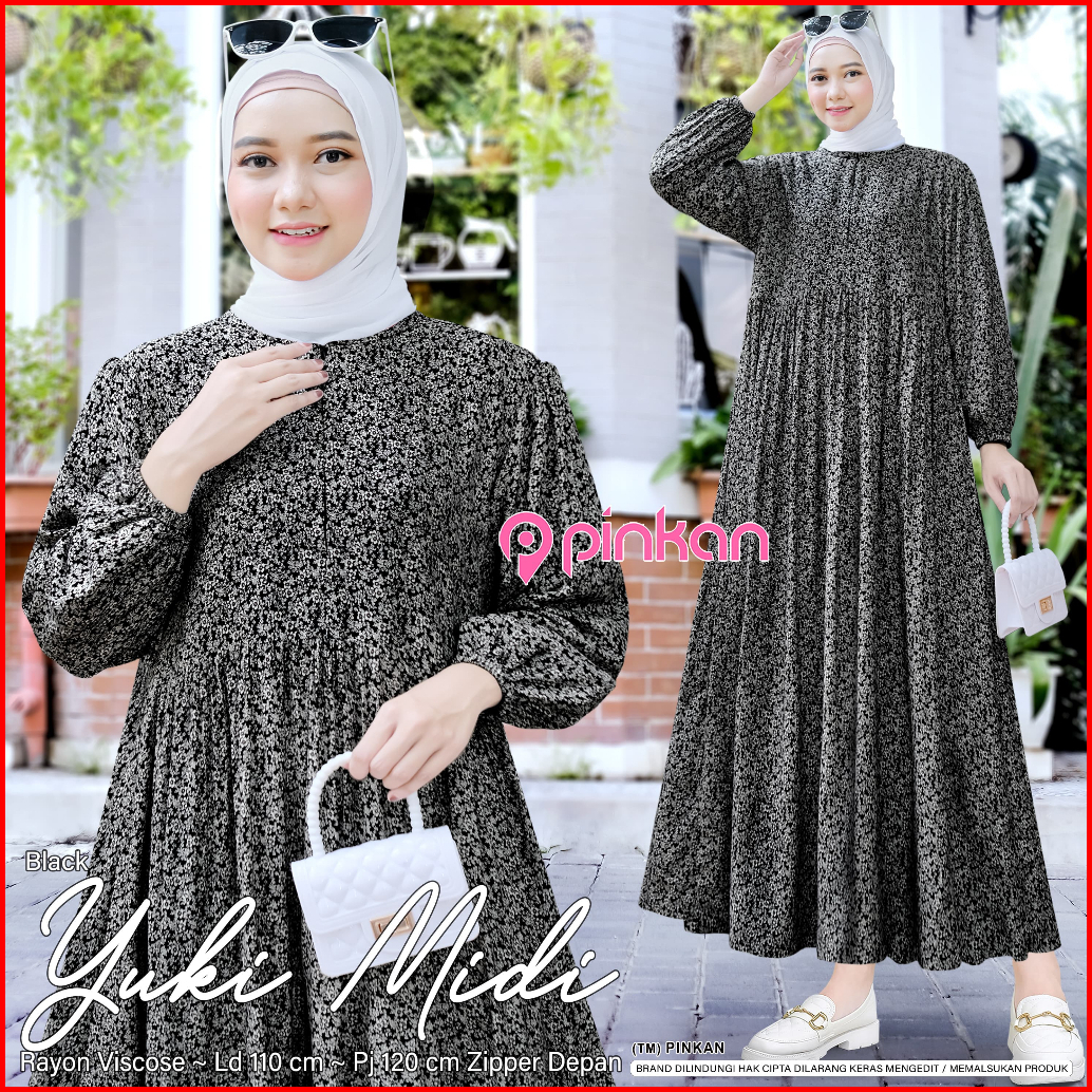 Yuki Midi Dress Rayon Viscose Adem Halus Busui Friendly By Pinkan