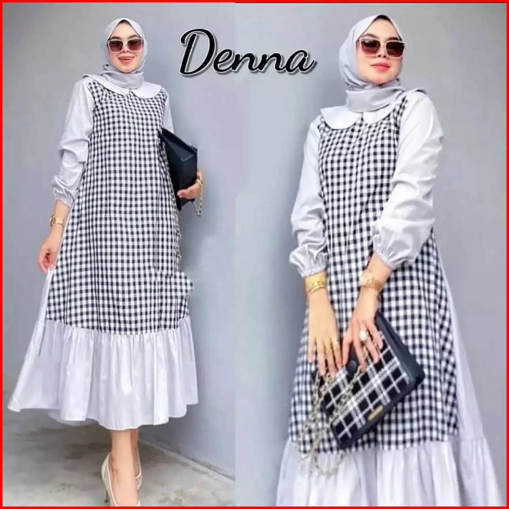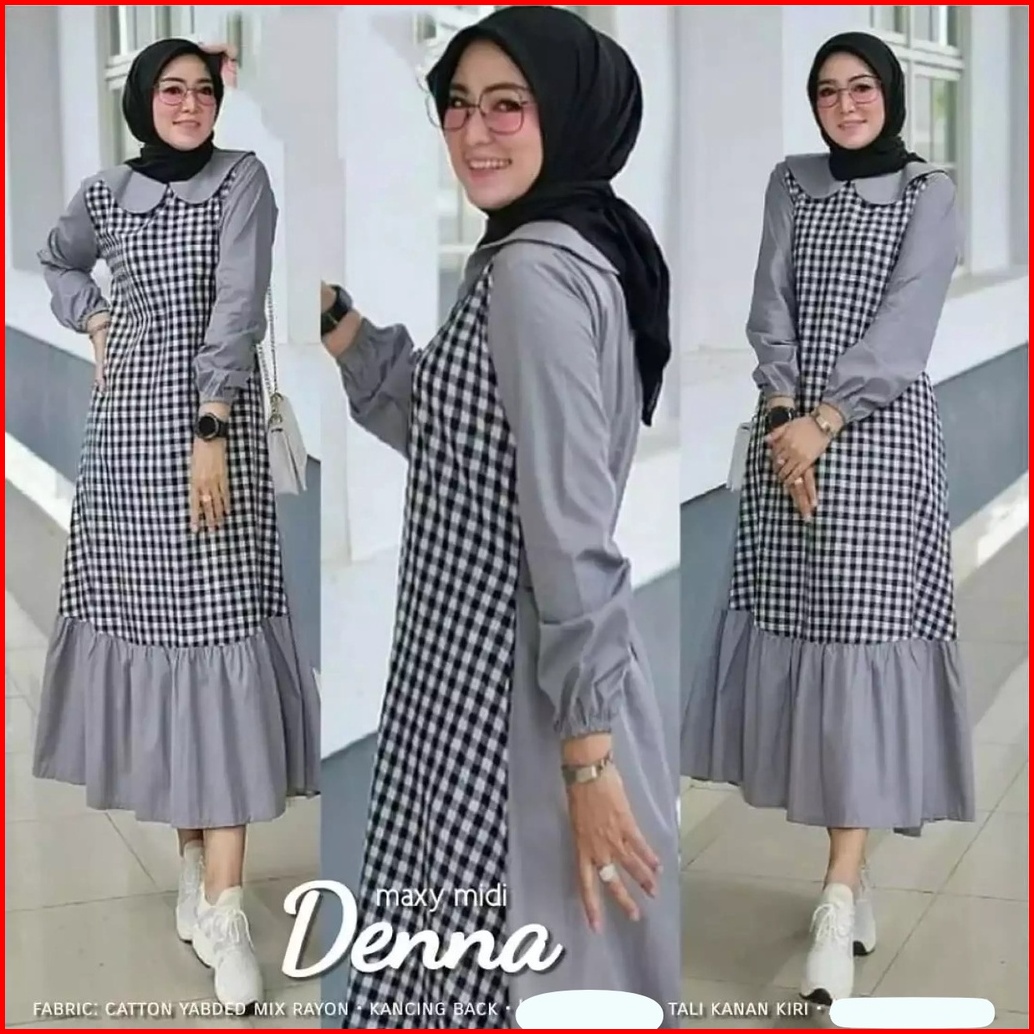 Promo Denna Maxy Midi Super Jumbo Terbaru 2025 Gamis Muslim Terlaris Bahan Moscrepe Mix Katun Kotak Fashion Muslim Trend