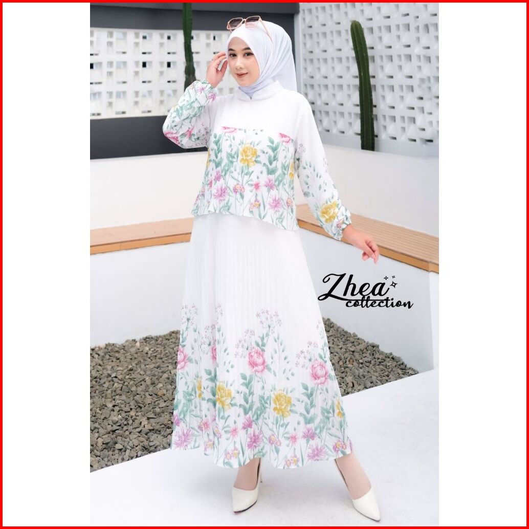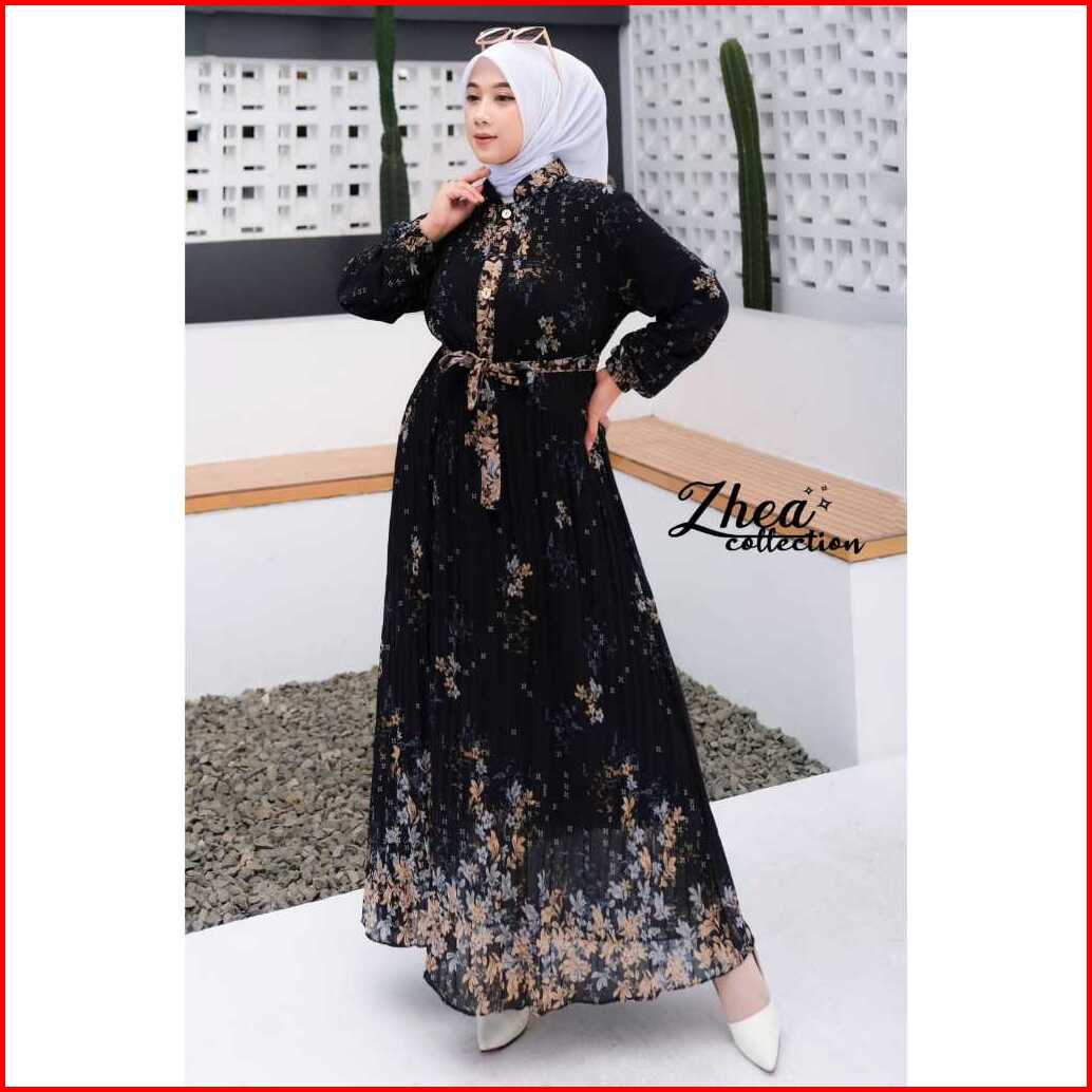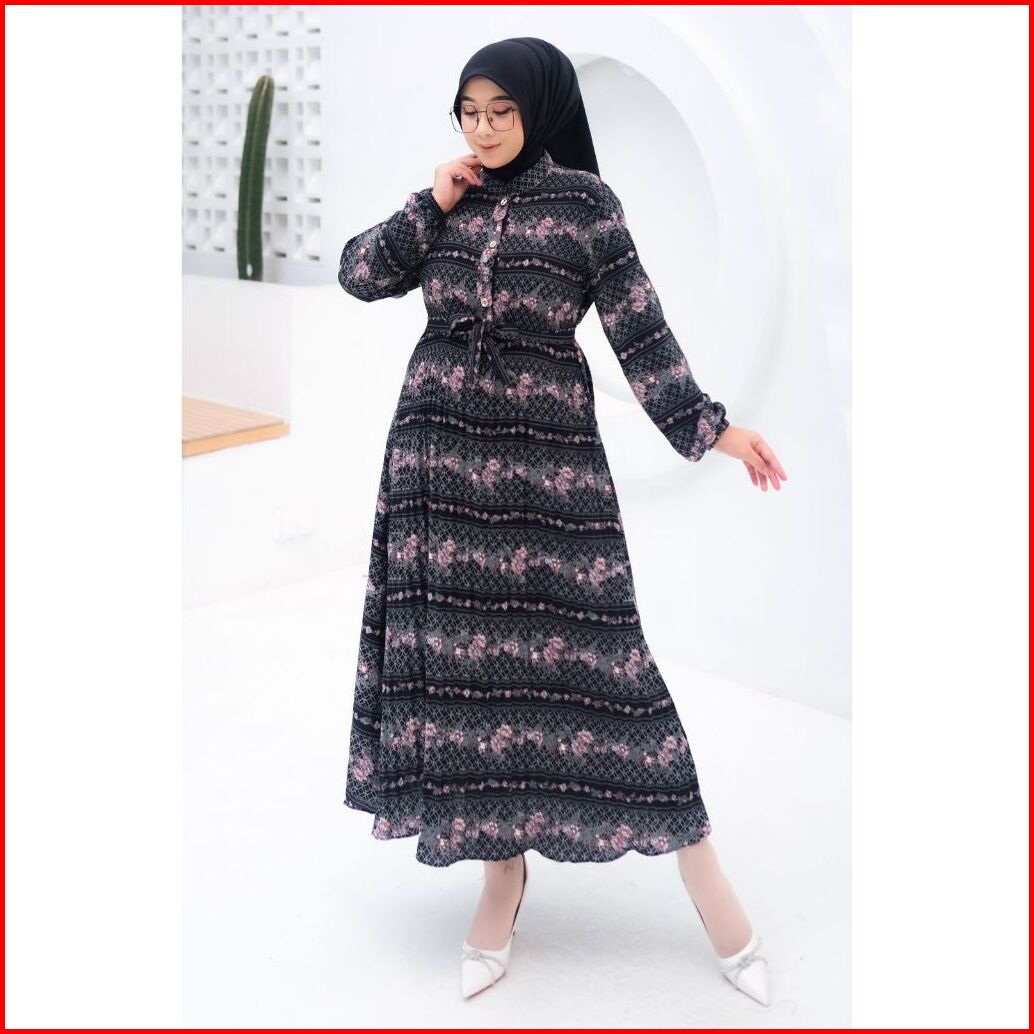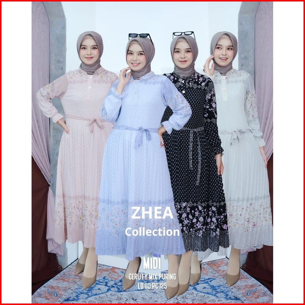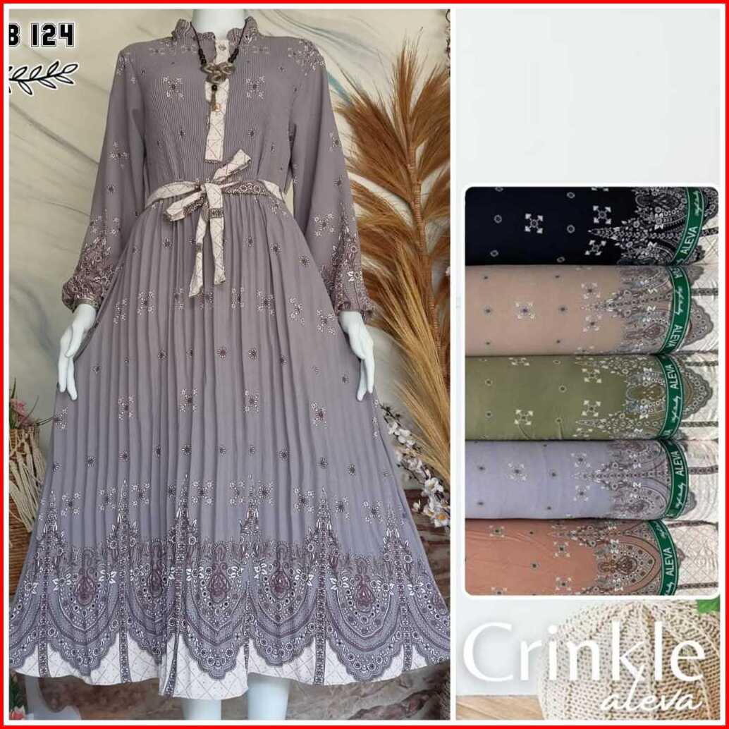 Ghina Midi Dress Plisket Ceruty Babydoll Full Furing Midi Plisket Crincle