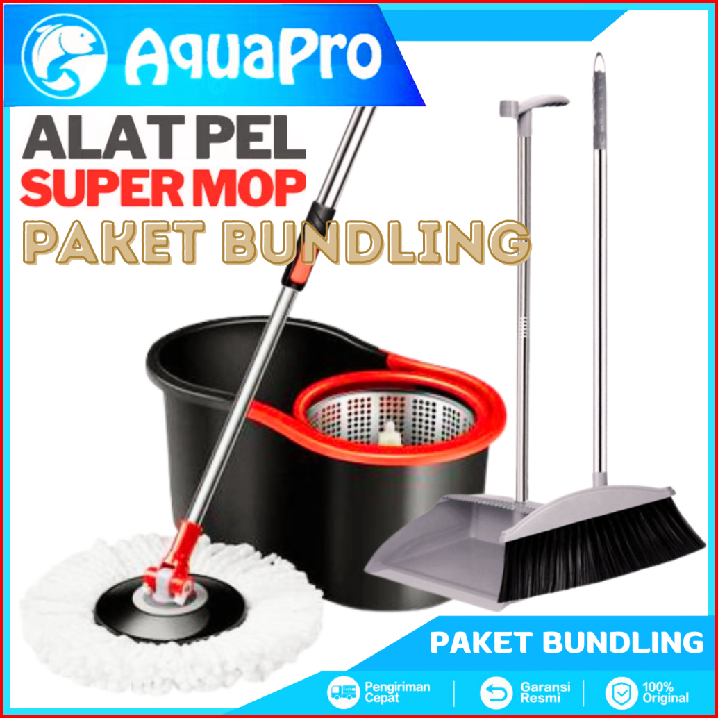 1 Set Paket Bunda Pel Lantai Ultra Mop Aclima Spin Mop Stainless Putar Spinnner Dan Set Sapu Pengki Package Alat Kebersi