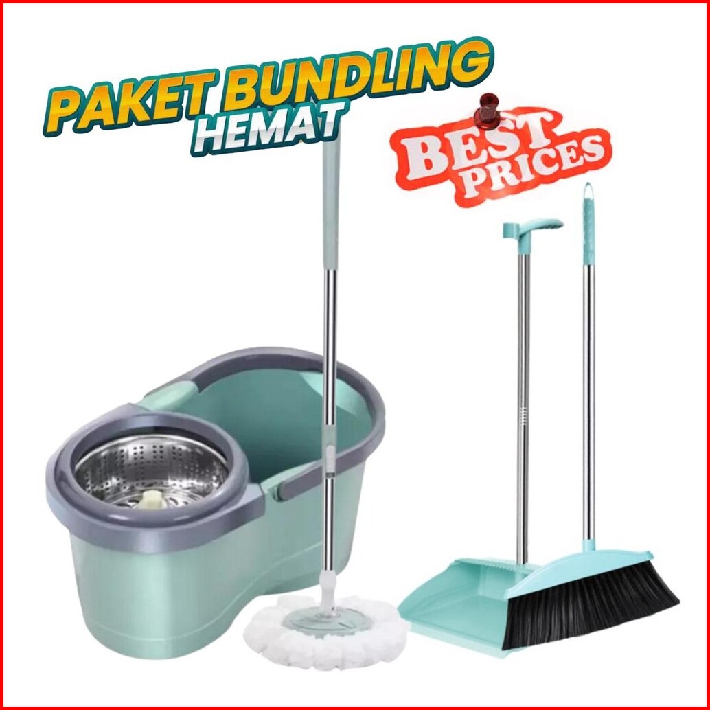 Paket Set Hemat Pel Lantai Spin Mop Ultra Aclima Dengan Set Sapu Pengki Alat Untuk Kebersihan Lantai Debu Kotoran