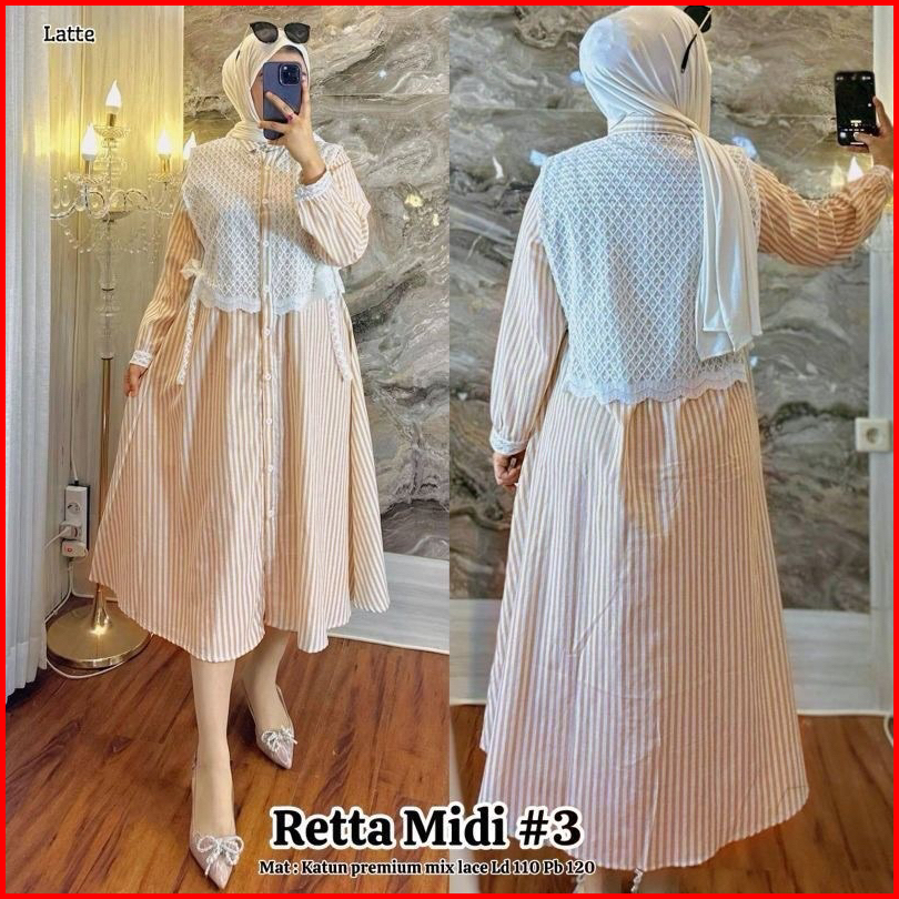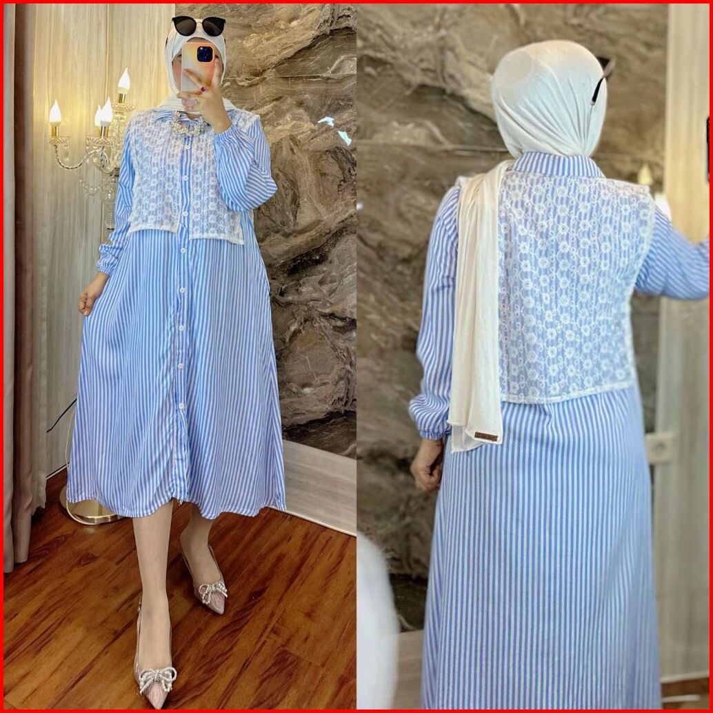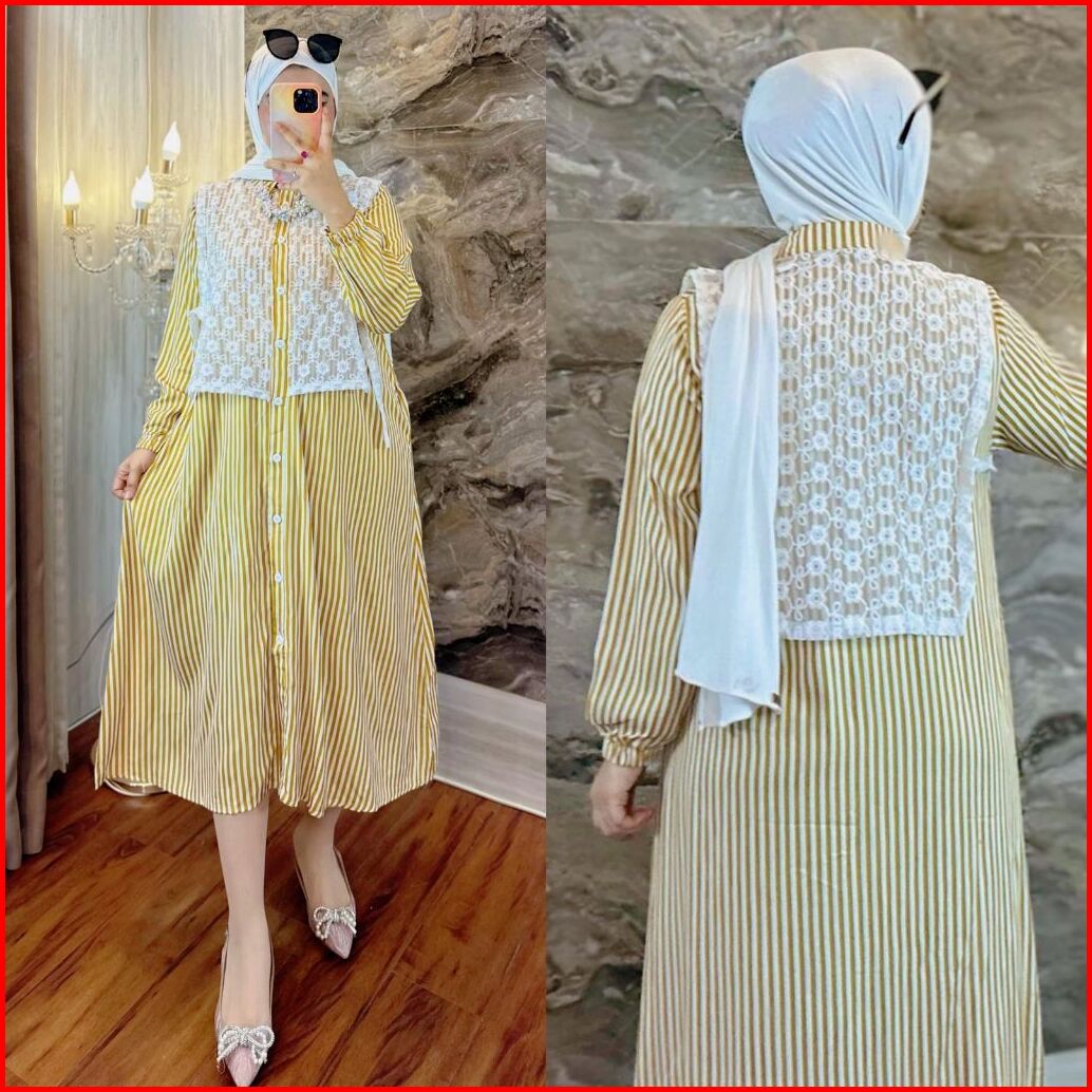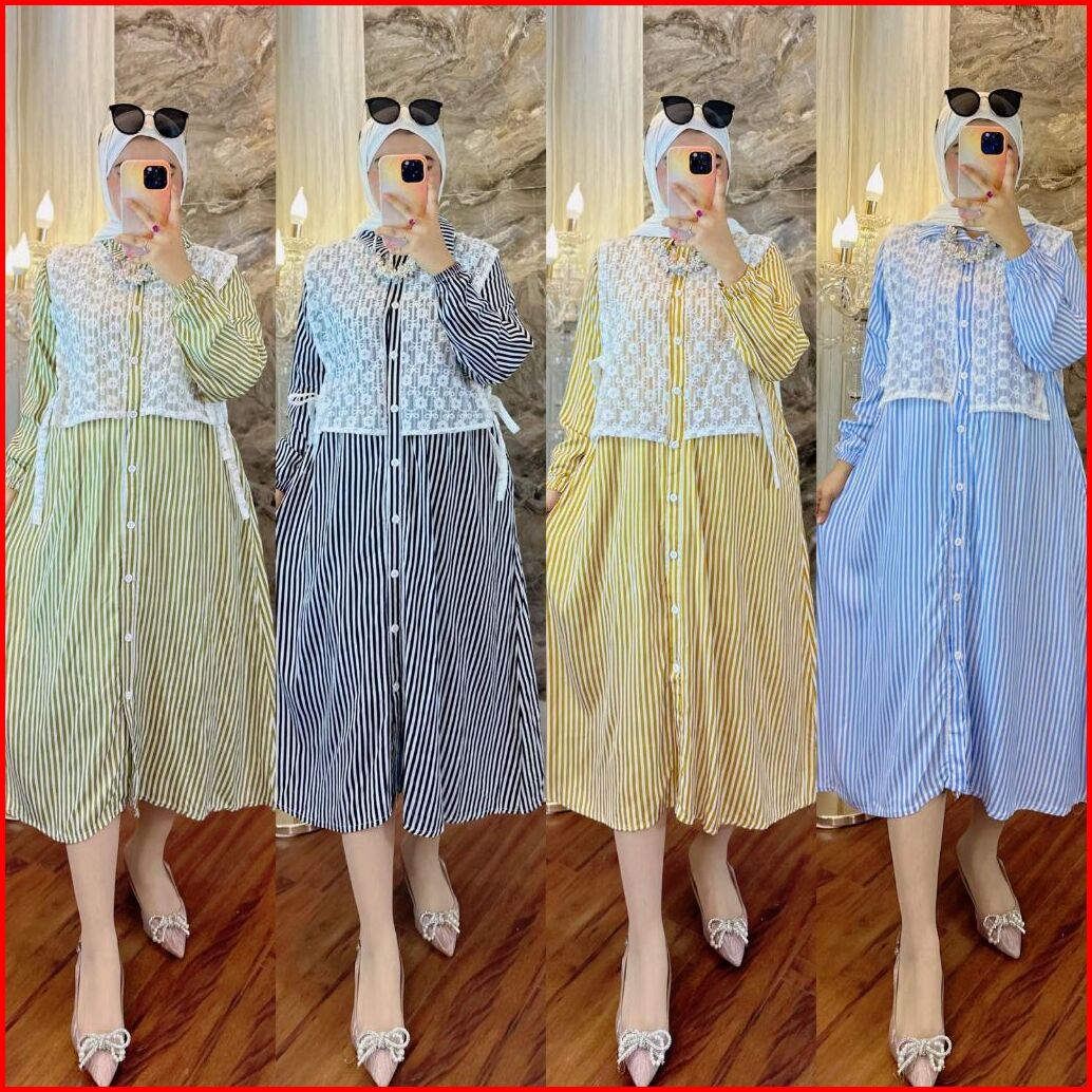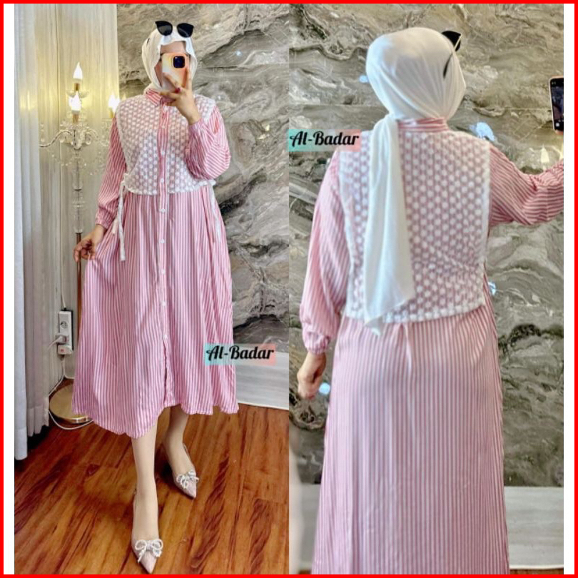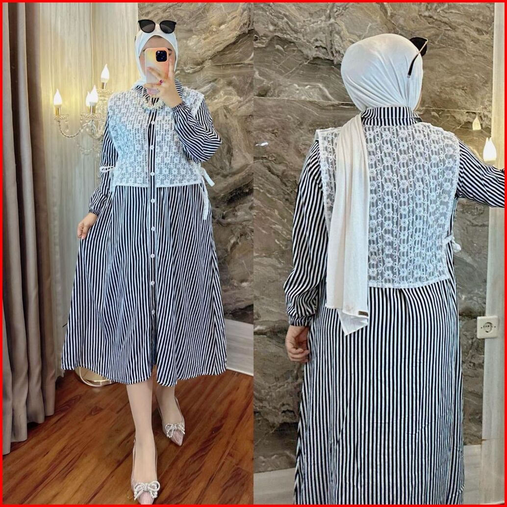 Renata Midi Dress Salur Mix Brukat Depan Belakang Gamis Salur Busui Friendly