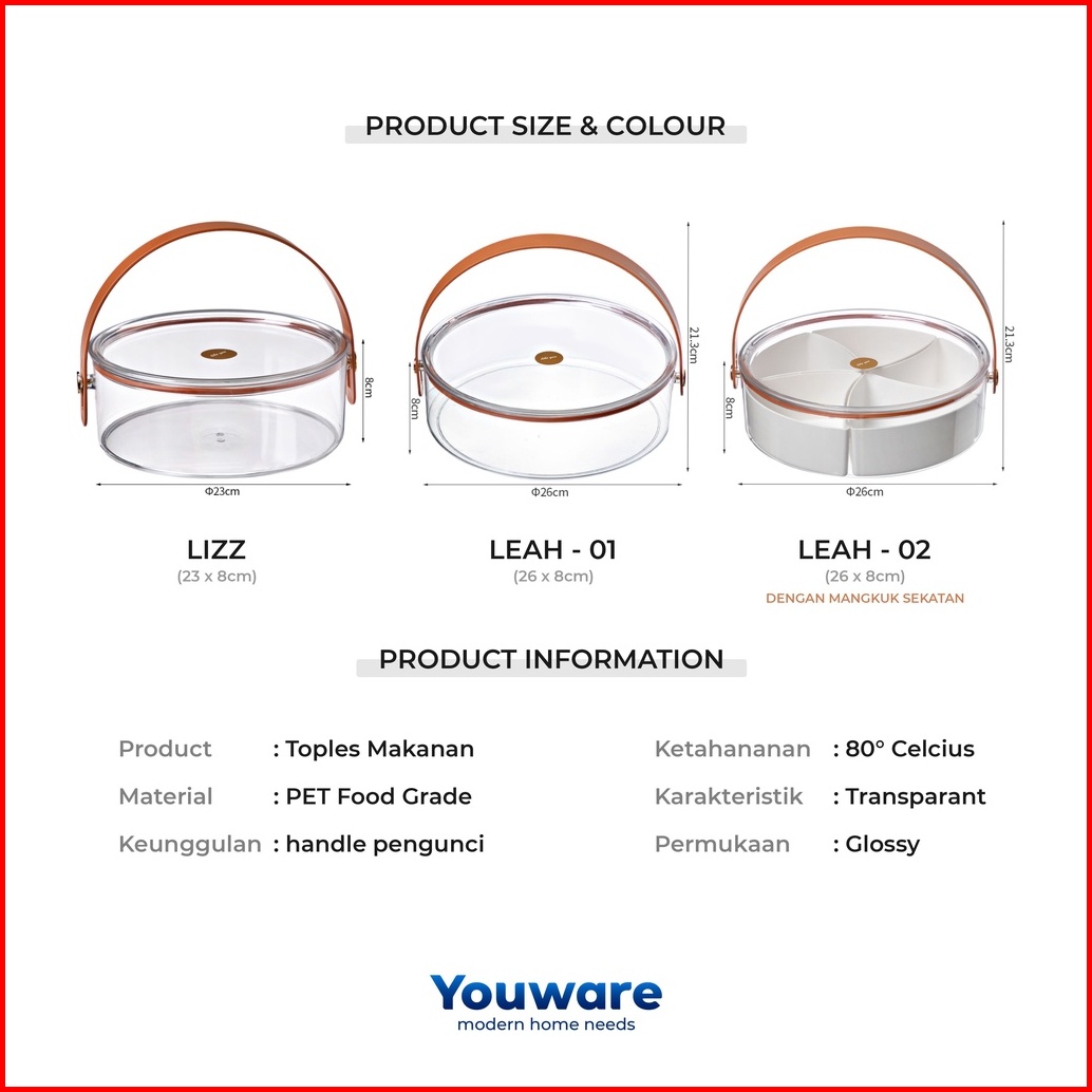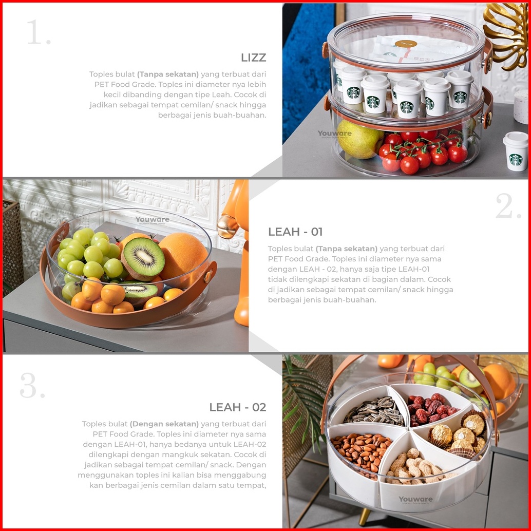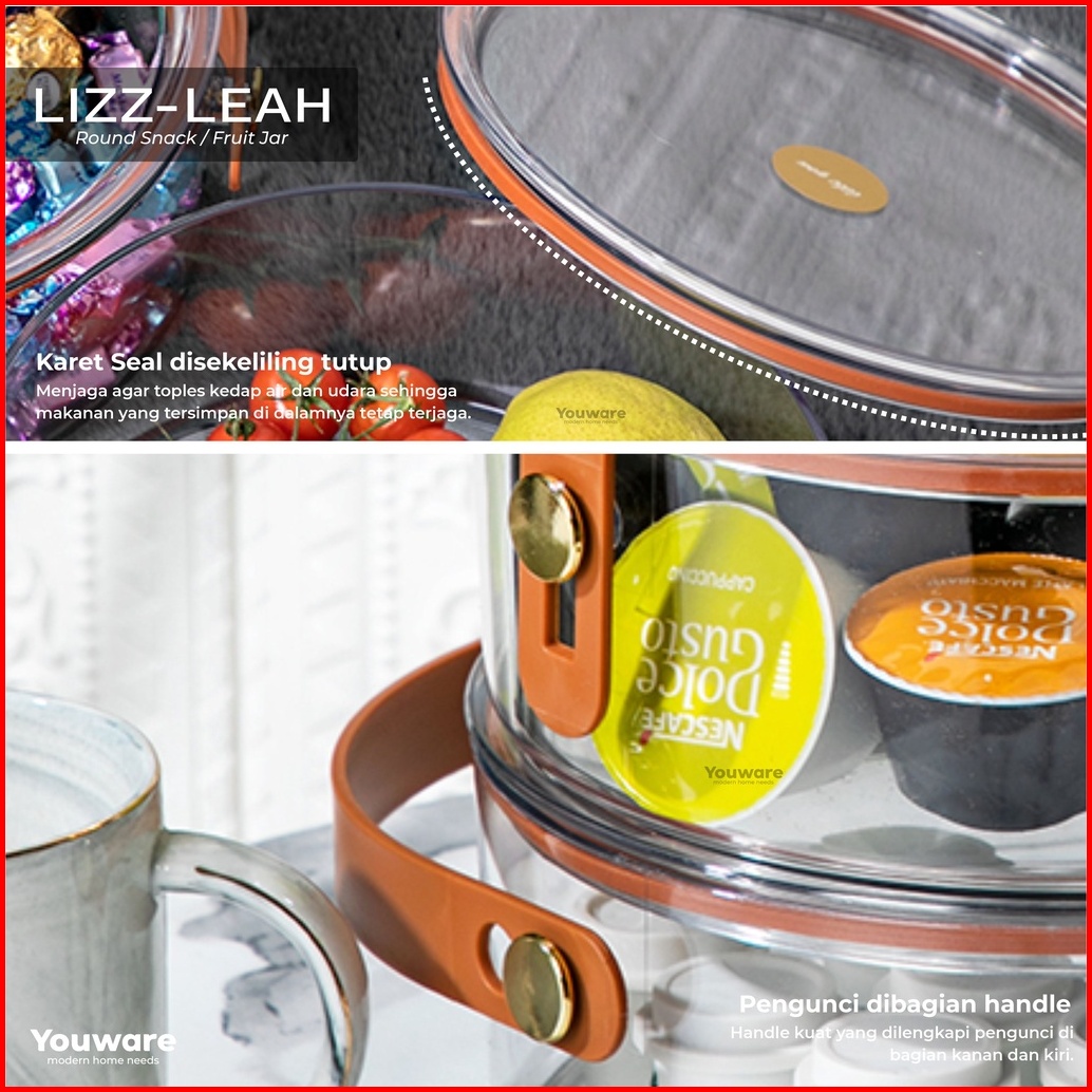 Youware - Leah Lizz Toples Bulat Plastik Tempat Wadah Penyimpanan Kue Dan Cemilan Bundar Kedap