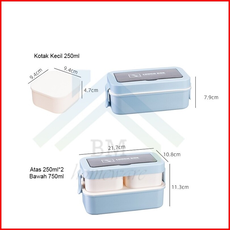 Kotak Makan 2 Tingkat 1000ml Lunch Box Bpa Free Kotak Bekal