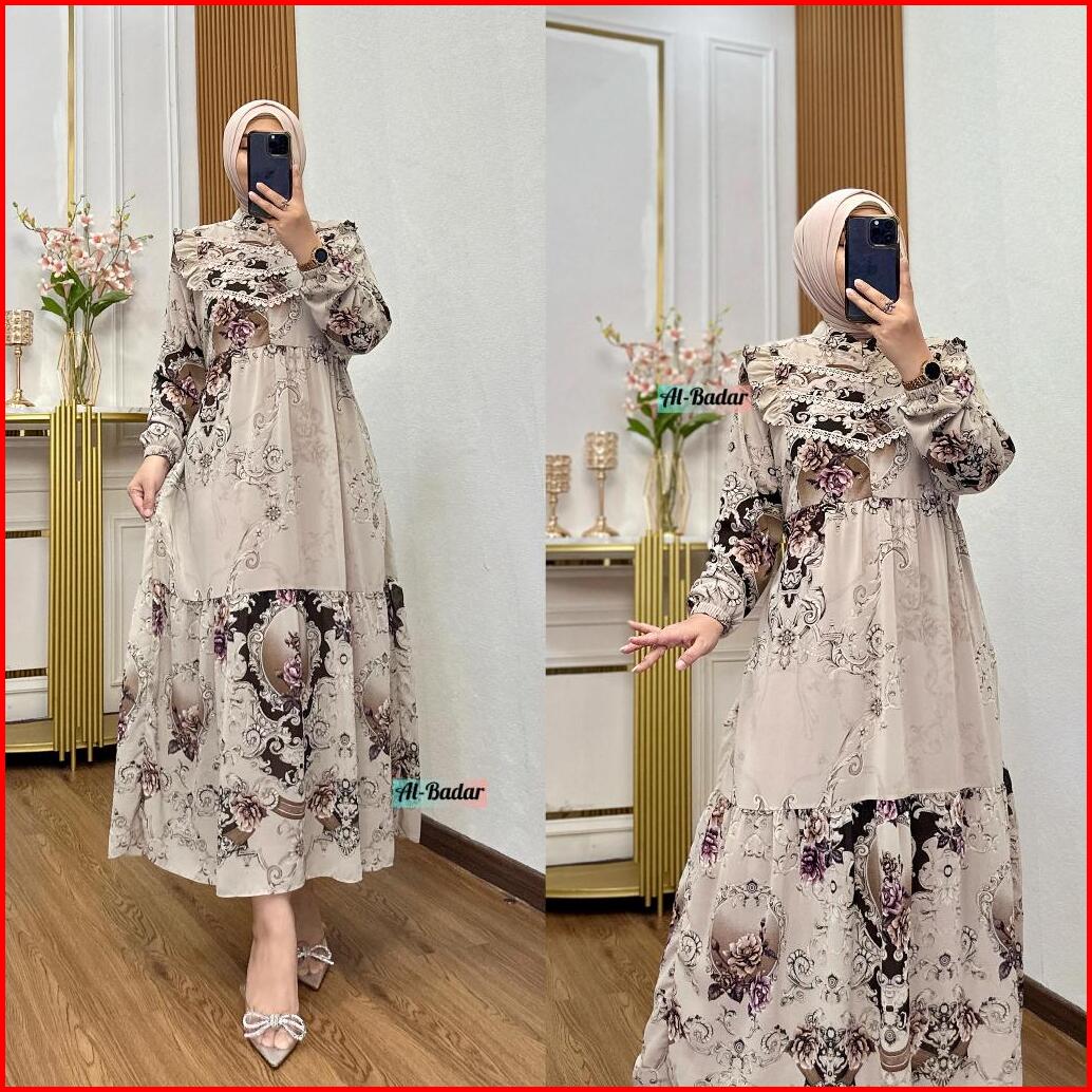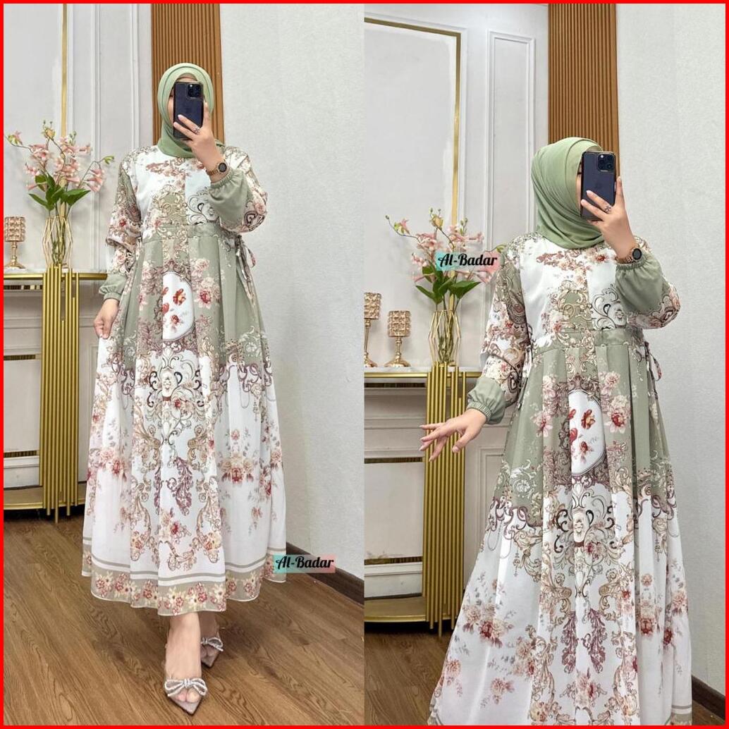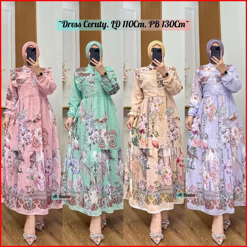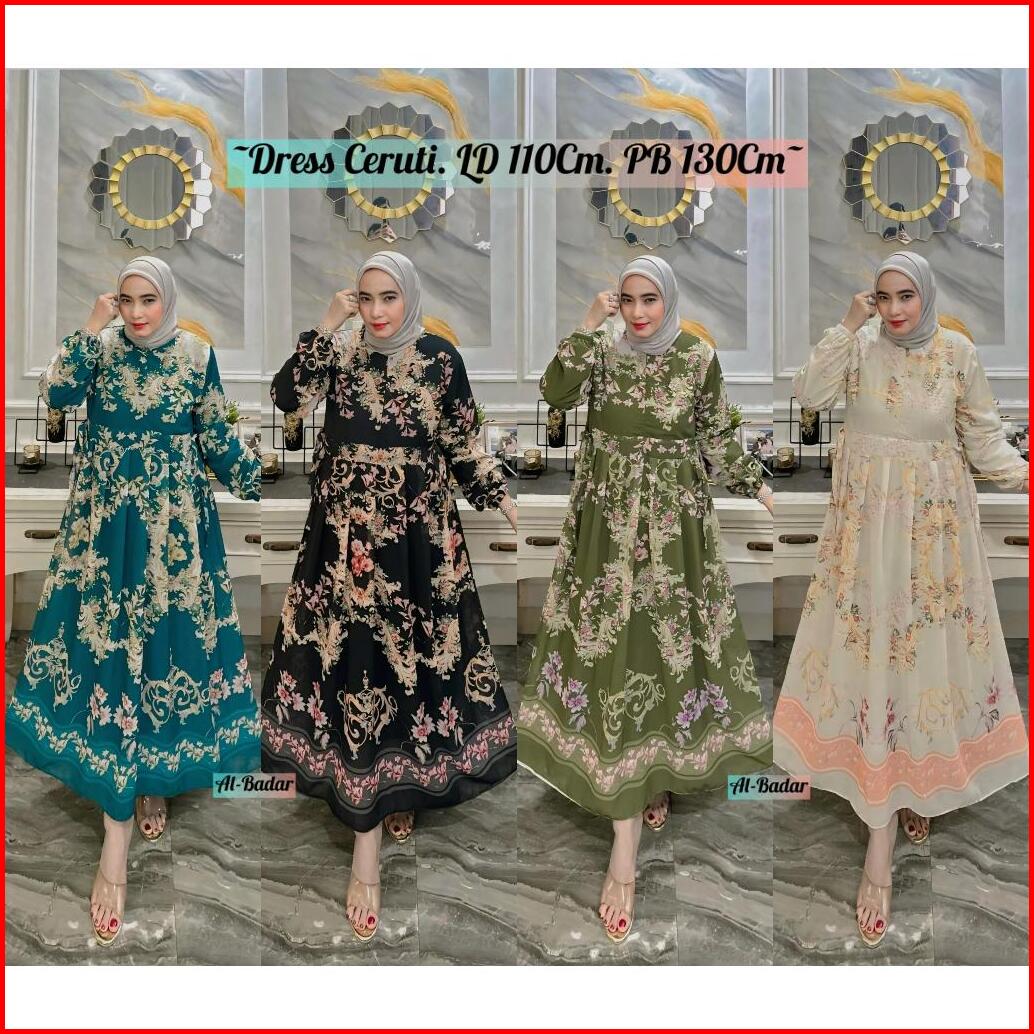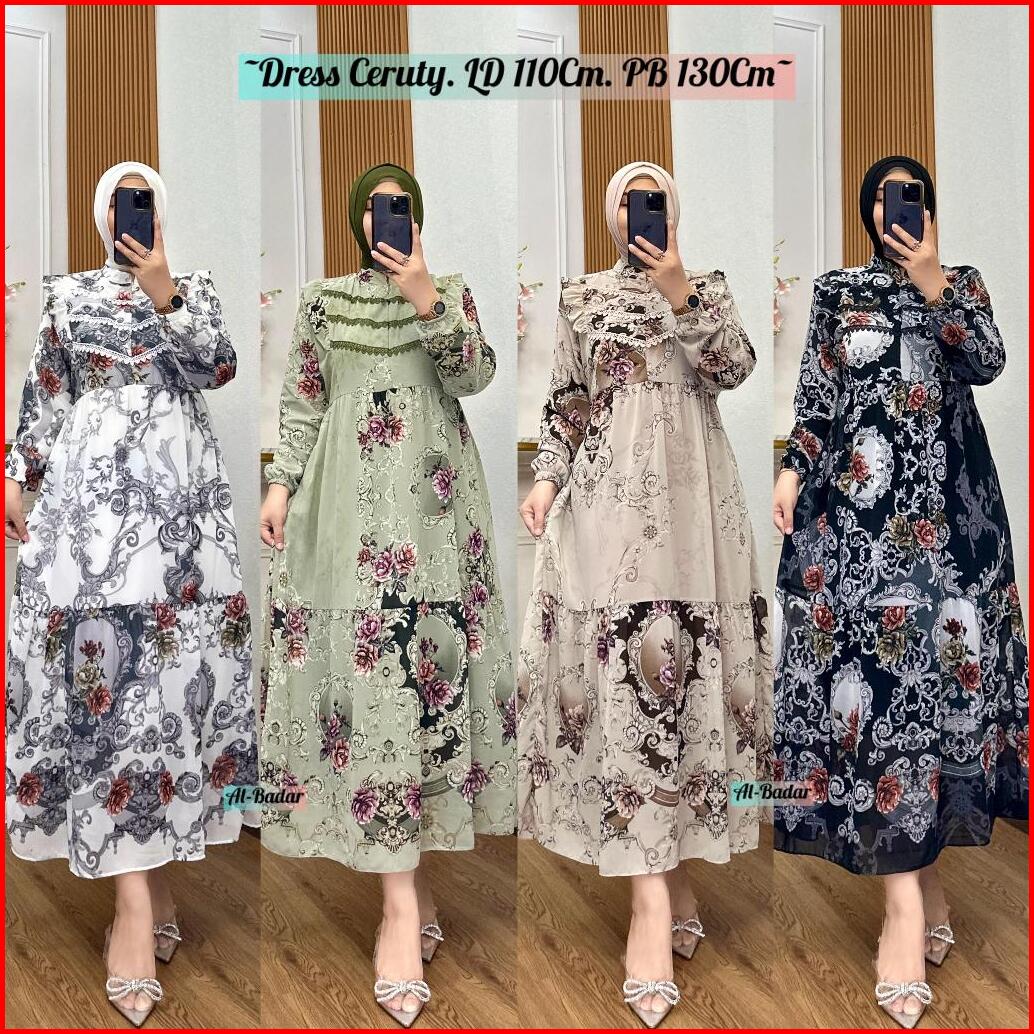 Midi Dress Ceruty Babydoll Motif Terbaru Dengan Variasi Tali Pinggang Serut Mididress Terbaru Tunik Ceruty Midi Dress Or