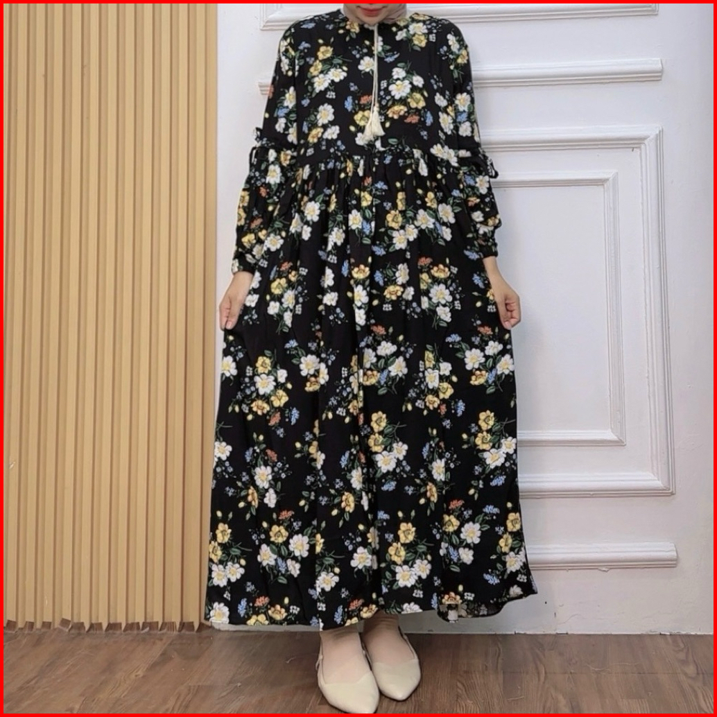 Flora Midi Dress Rayon Motif By Tarisaa.id Midi Dress Wanita Dewasa