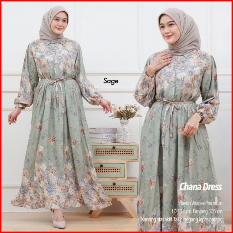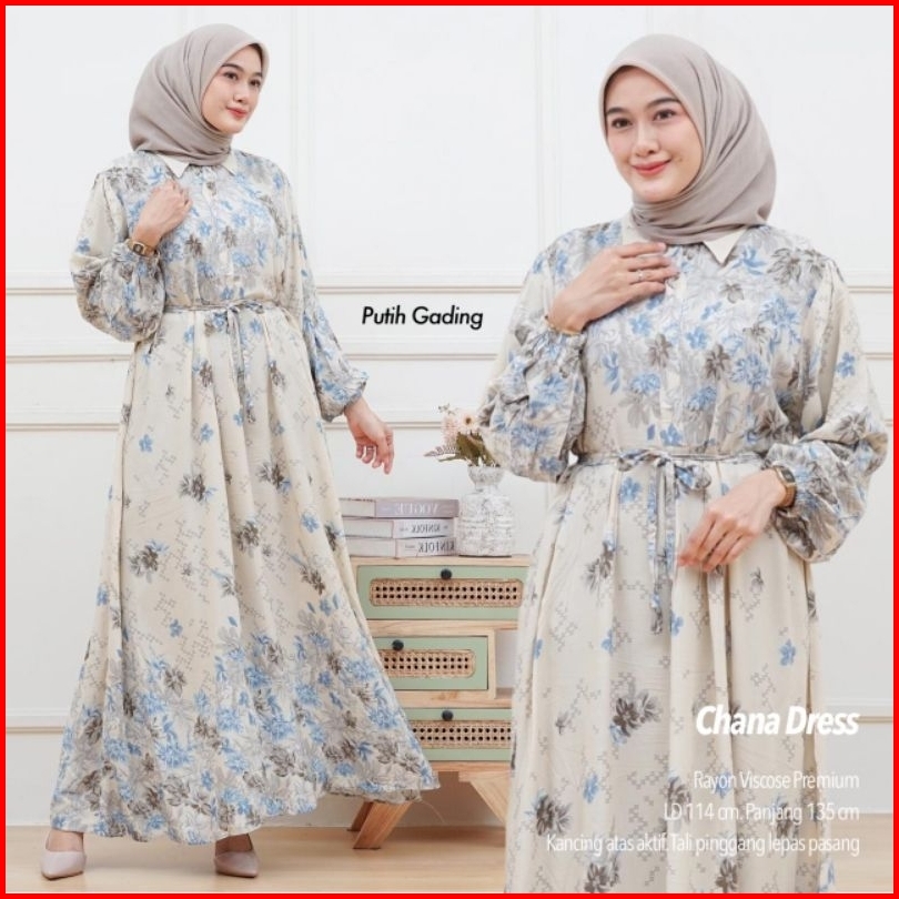 Chana Dress Wanita Rayon Viscose Dress Lebaran Dress Motif