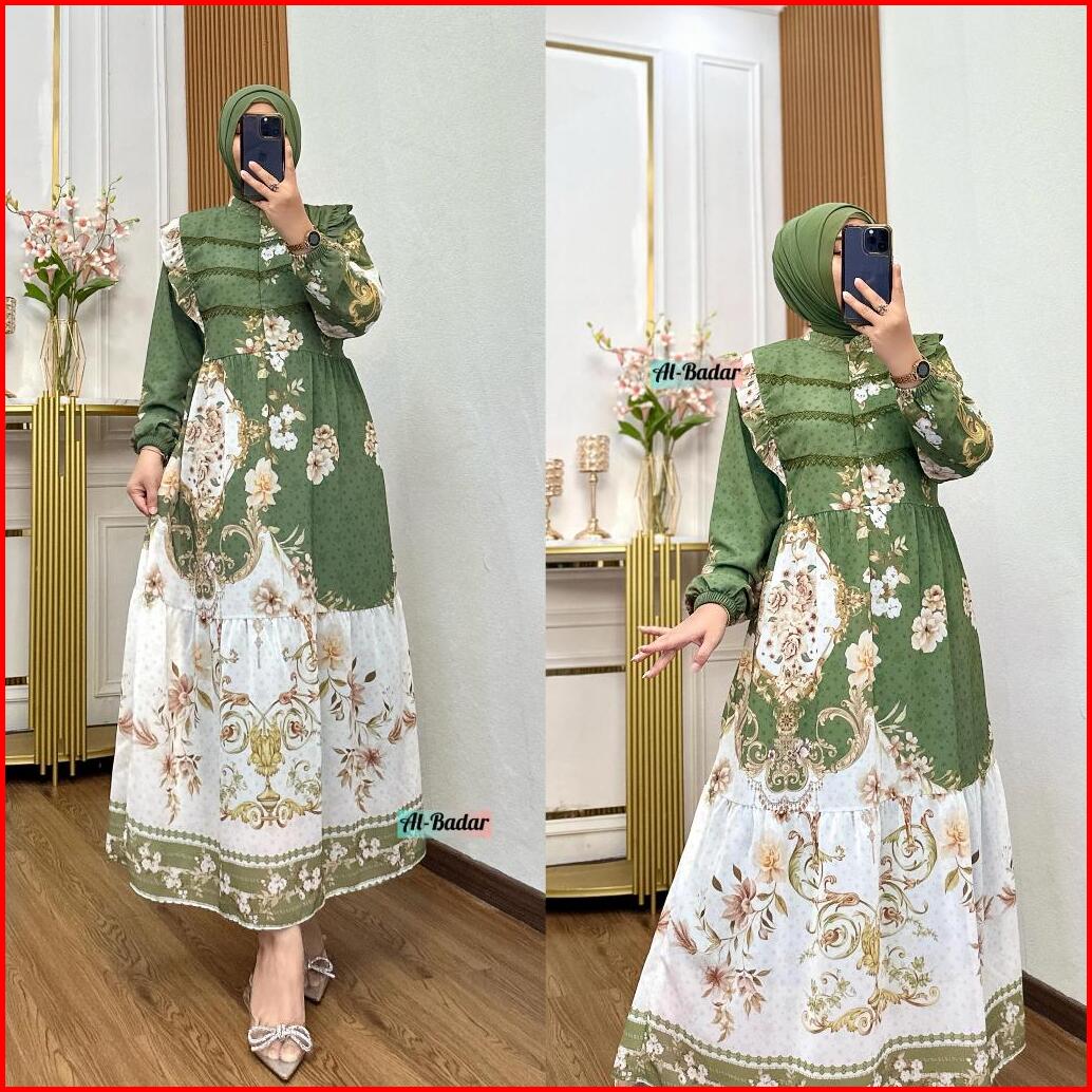 Dress Ceruty Babydoll Midi Dress Mewah Dress Kondangan Busui Friendly
