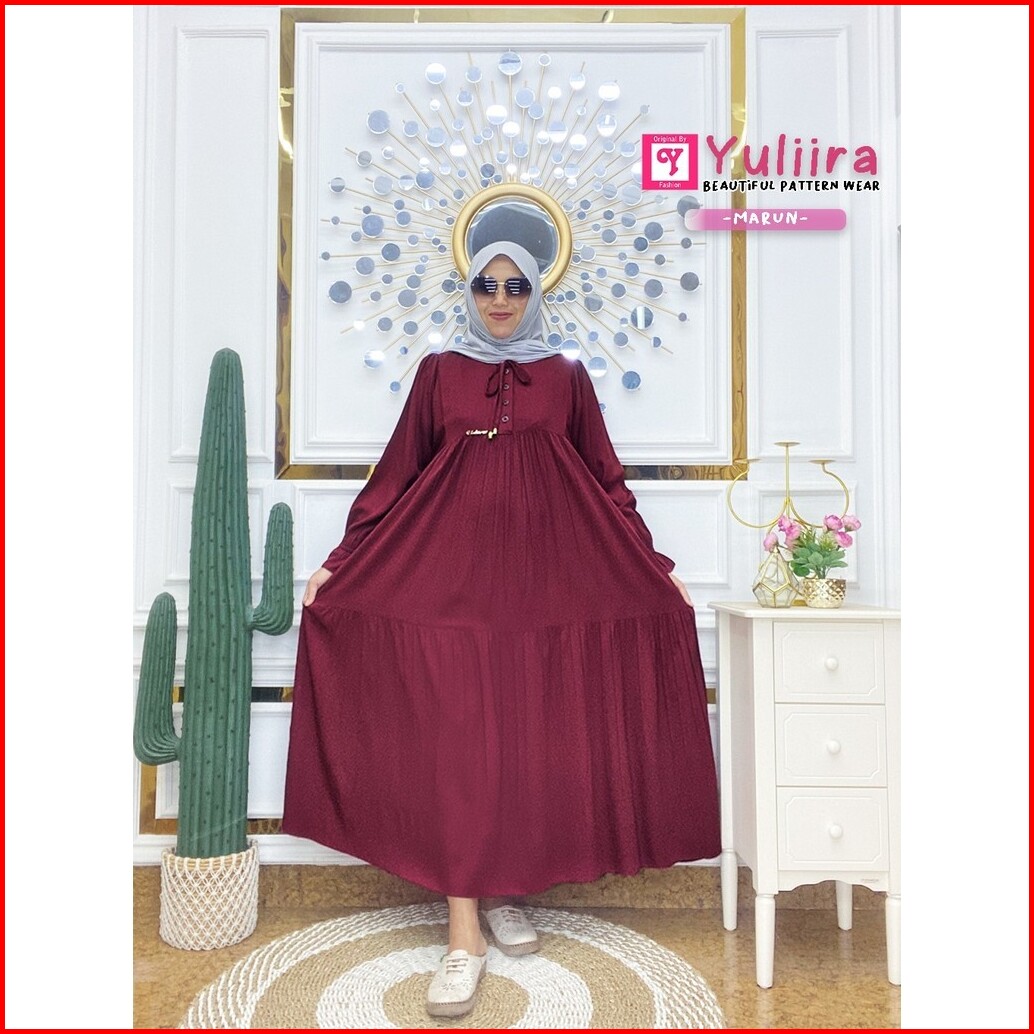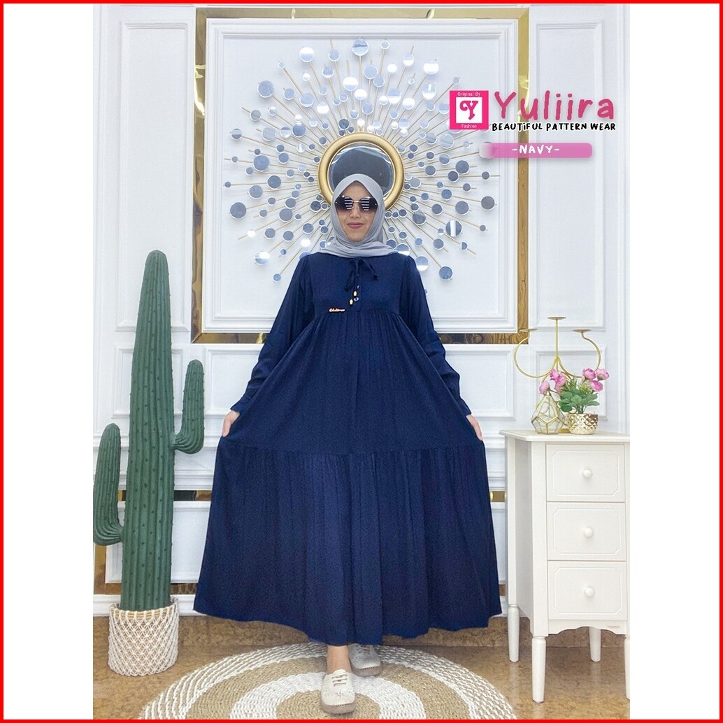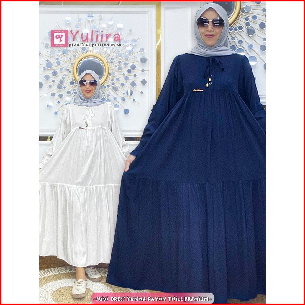 Midi Dress Yumna Rayon Twill Tebal Uniqlo Yuliira Fashion Kancing Busui Mididress Jumbo Muslim Gamis Lebaran 2025