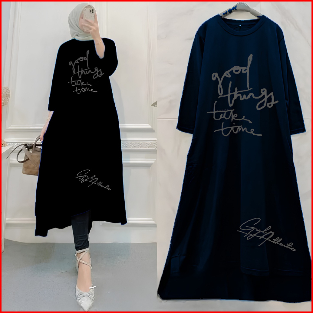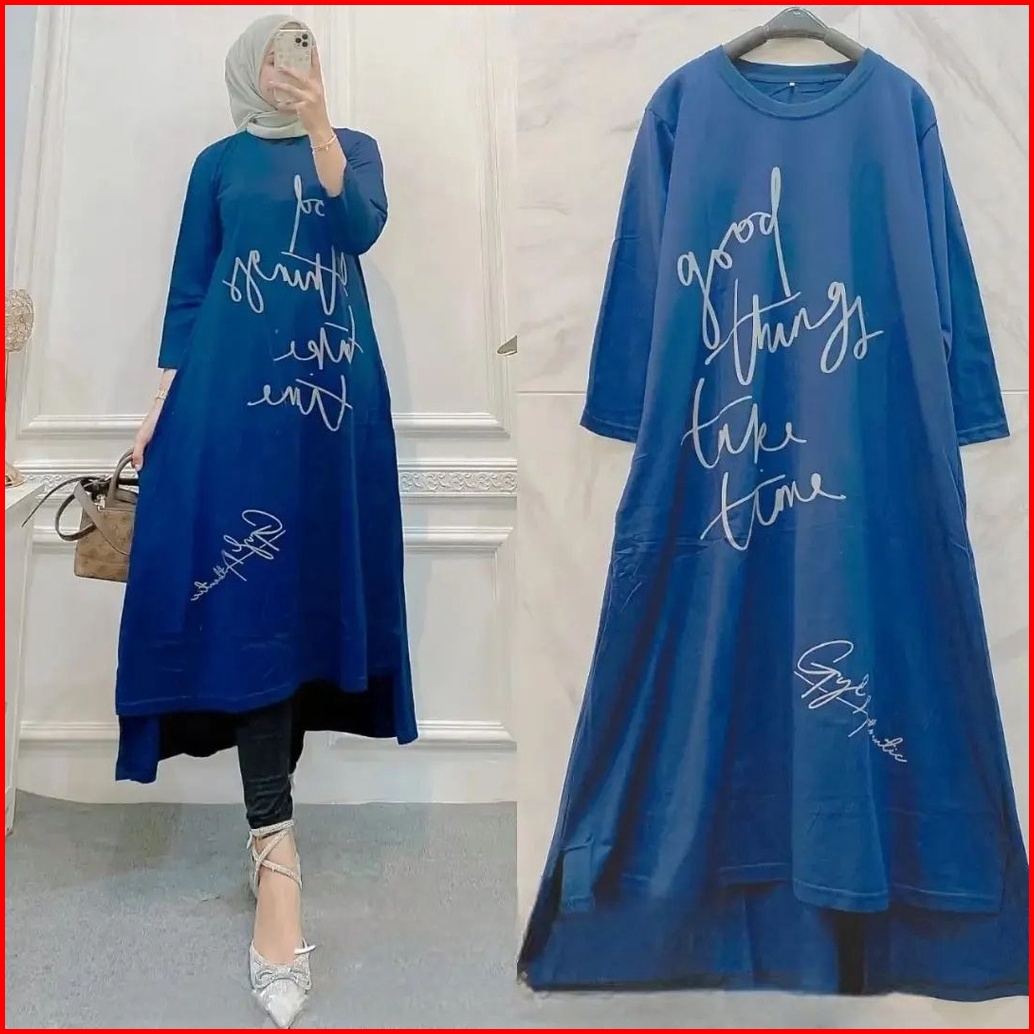 Arista Midi Dress Bahan Katun Combed Aplikasi Sablon Ukuran M L Xl Xxl Gamis Wanita Terbaru 2022 Kekinian Midi Dress Mus