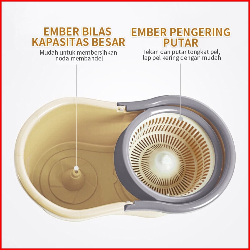Alat Pel Lantai Dengan Rol Praktis Kain Pel Putar Spin Mop Alat Pel Lantai Otomatis