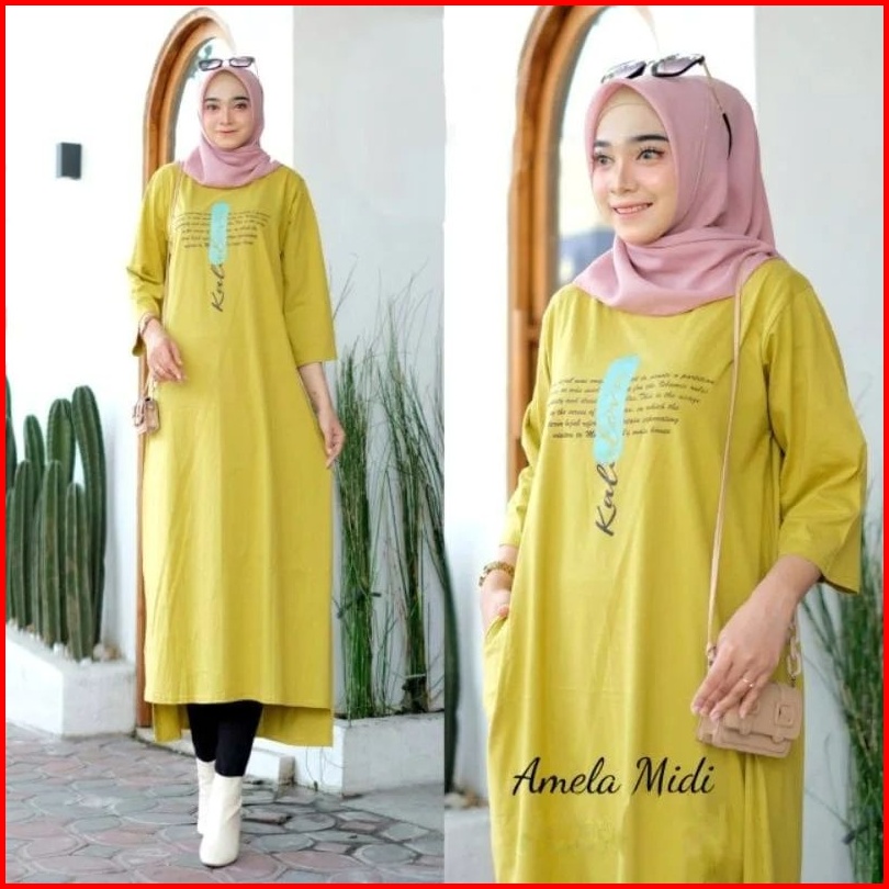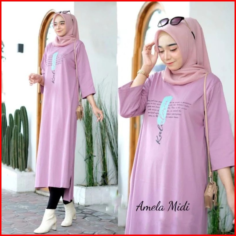 Gamis Midi Terbaru Amela Midi Bo Bahan Kaos Katun Combed 24s Aplikasi Sablon Size S M L Xl Xxl 3xl Dress Kaos Wanita Ove