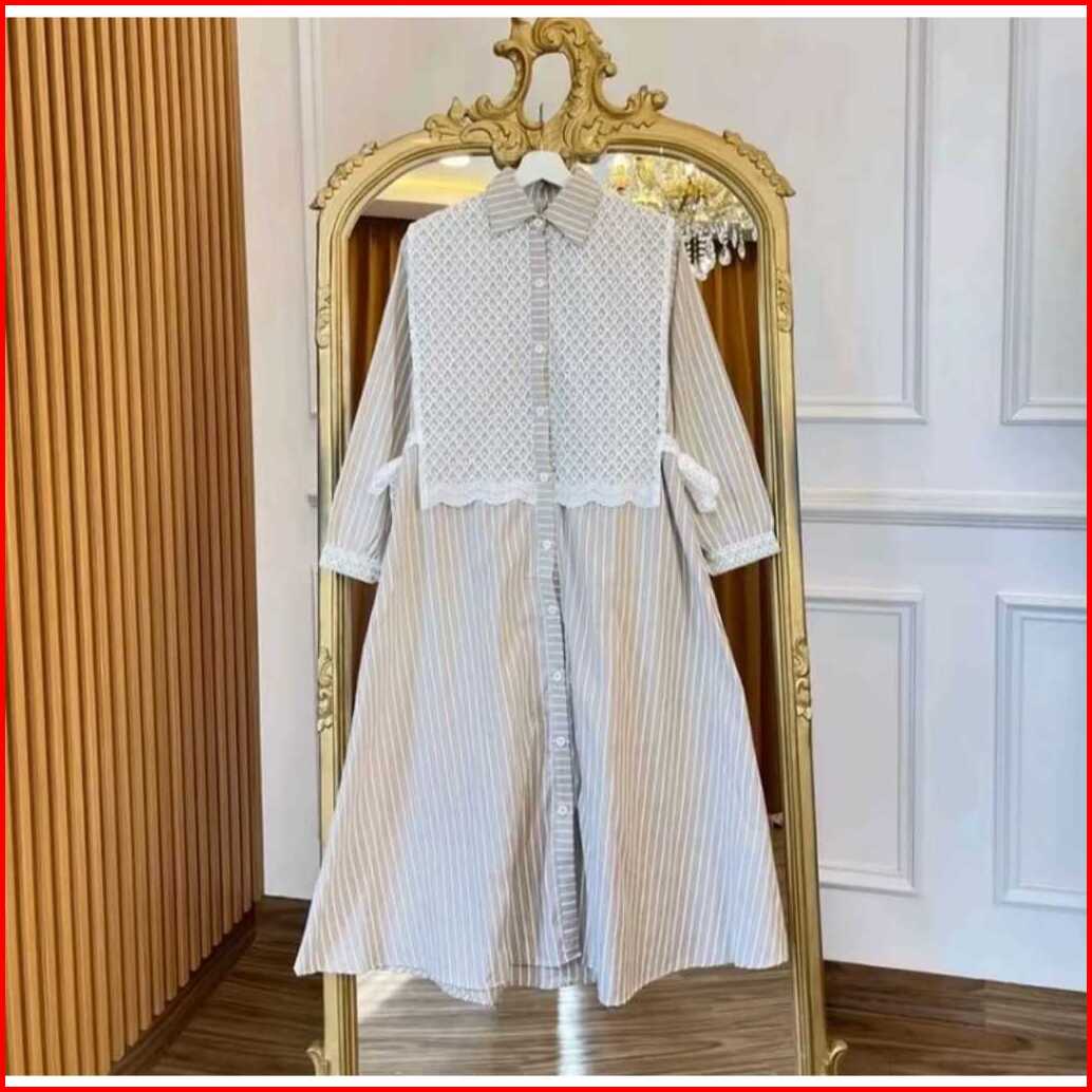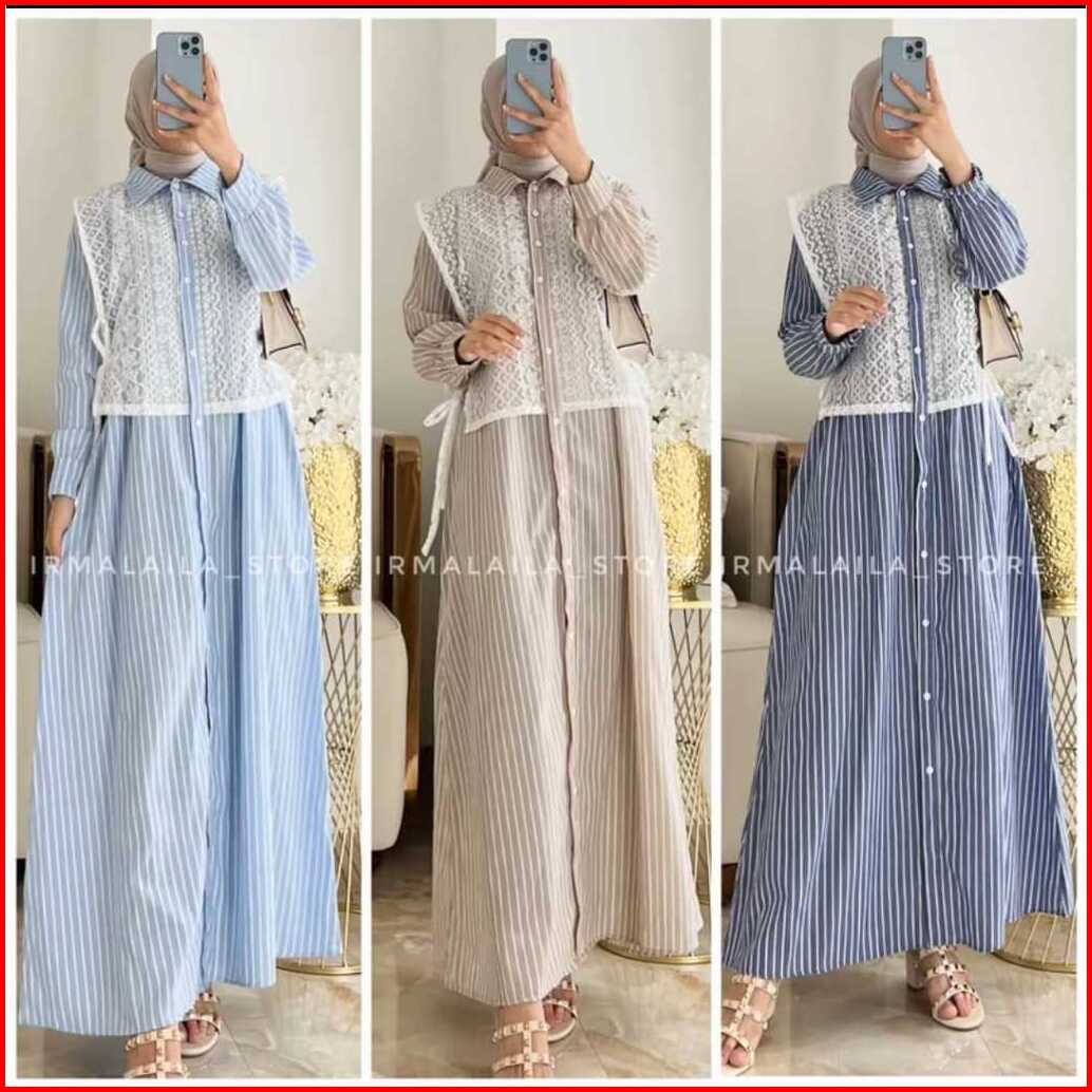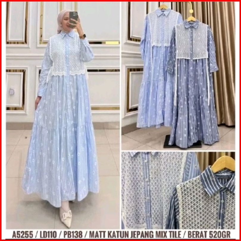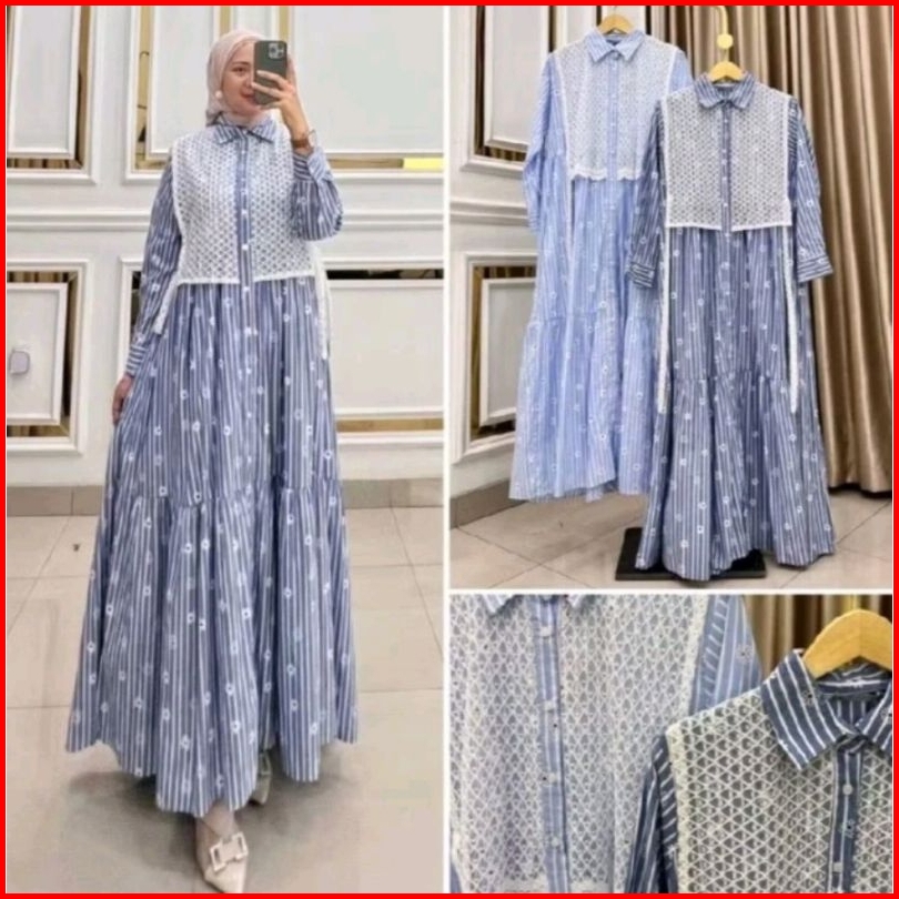 Gamis Katun Salur Kombinasi Brukat Mewah