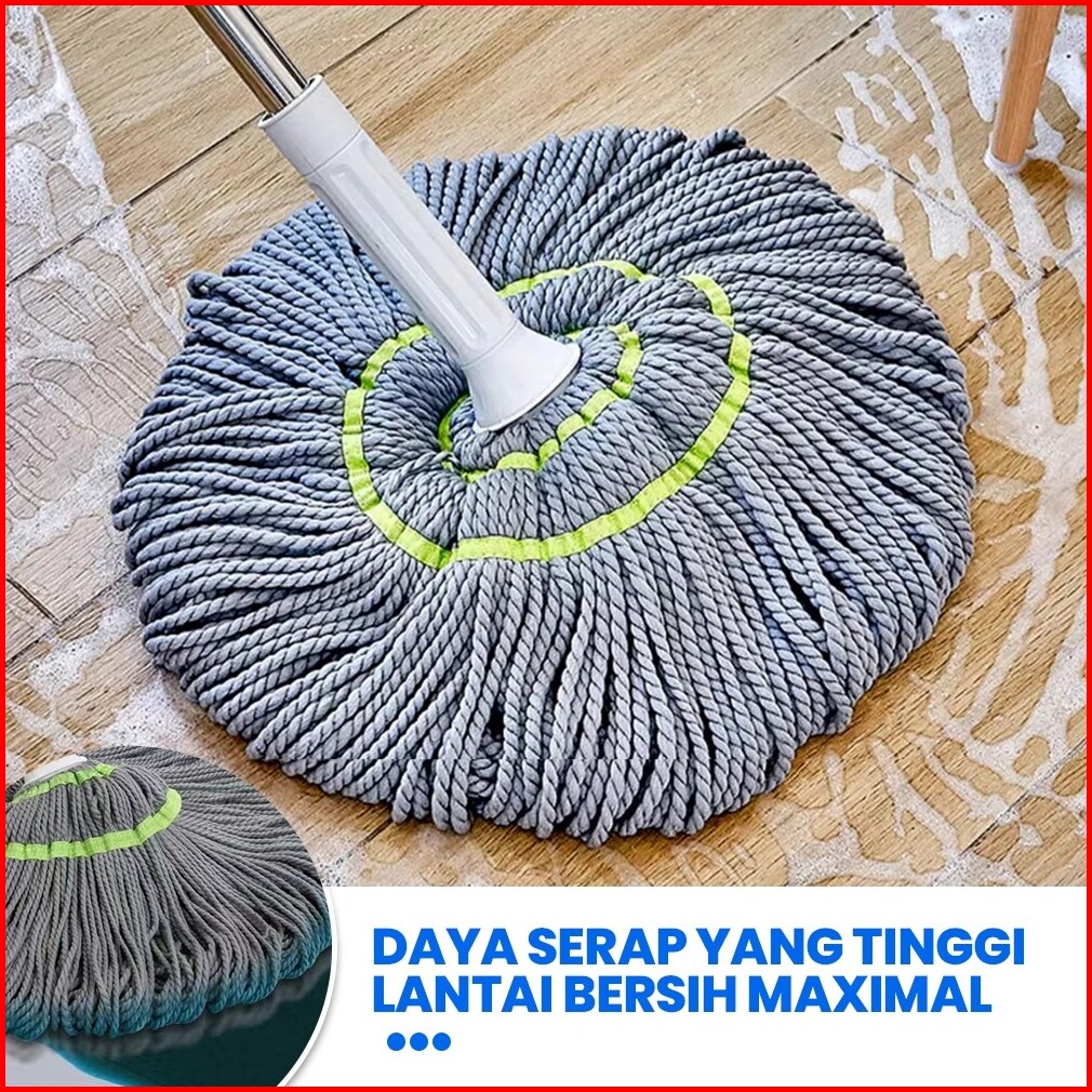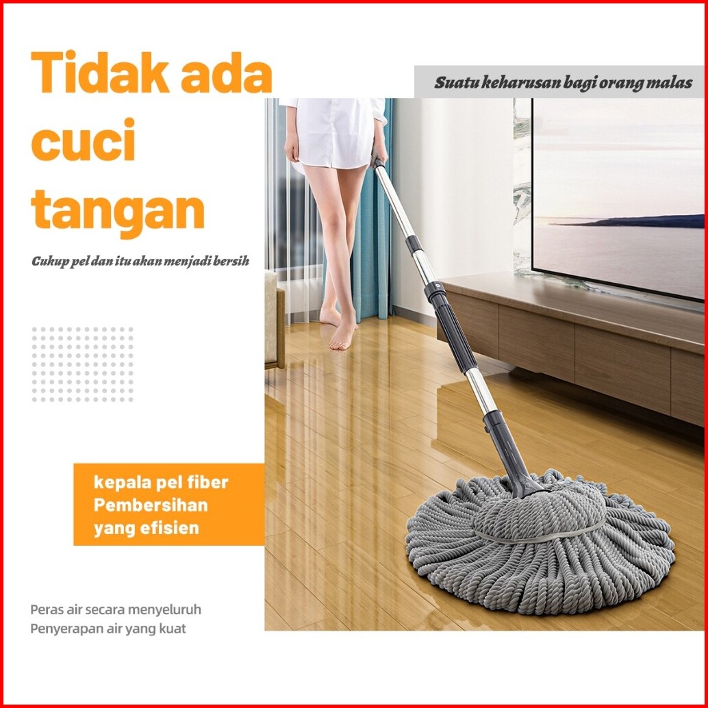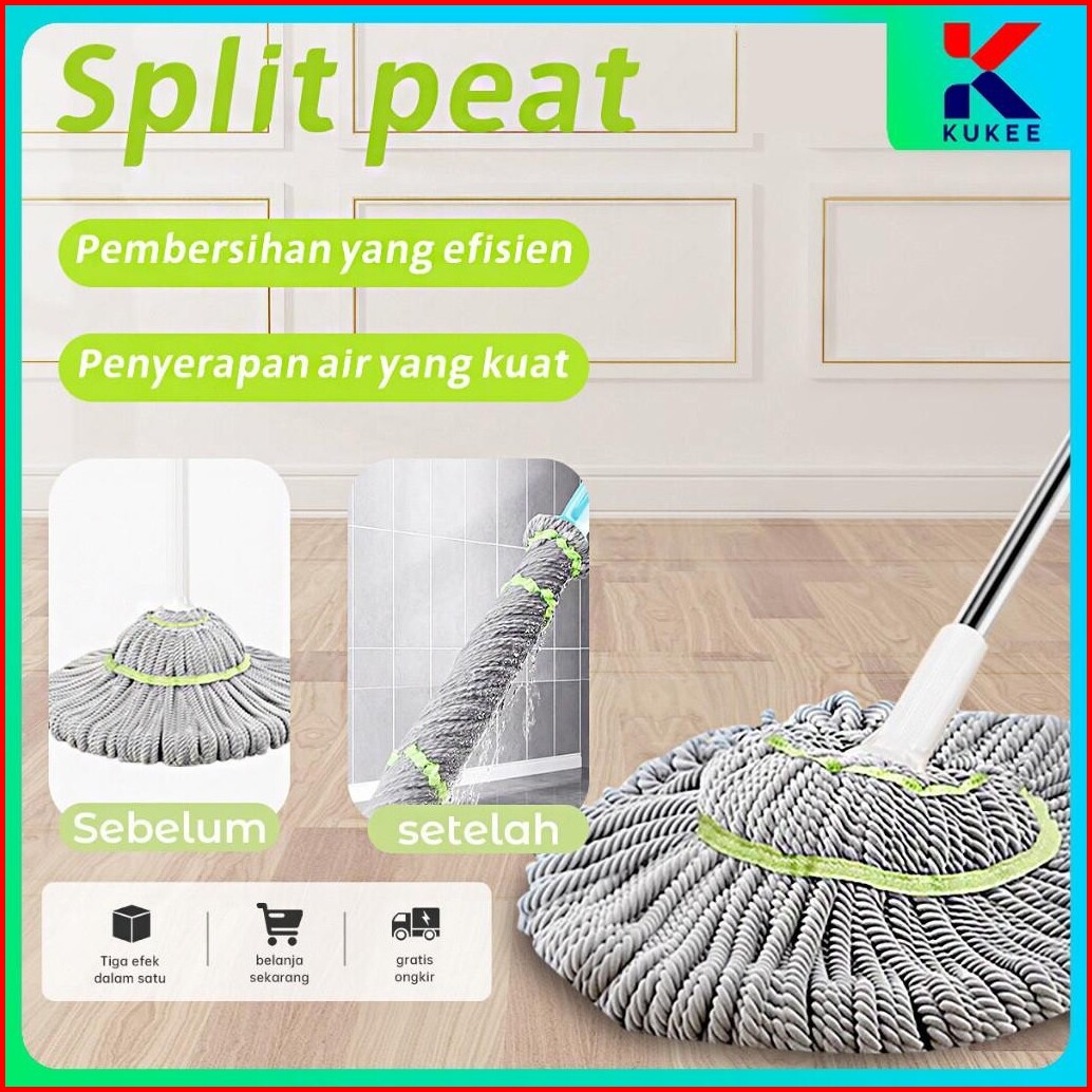 Kukee Pel Lantai Putar Stainless Steel Otomatis Twist Mop Microfiber Daya Serap Tinggi Lepas Pasang Kain Pel Peras Putar