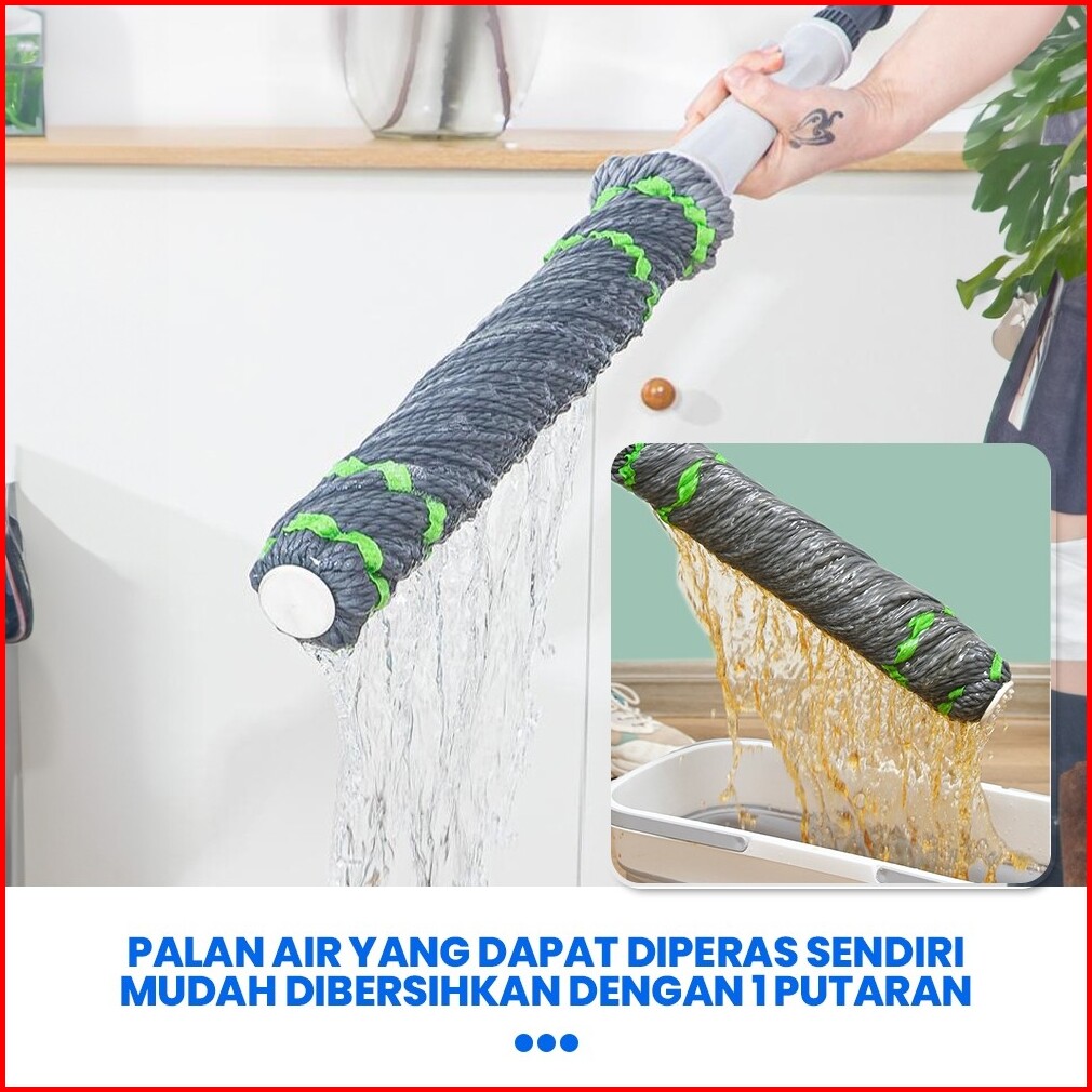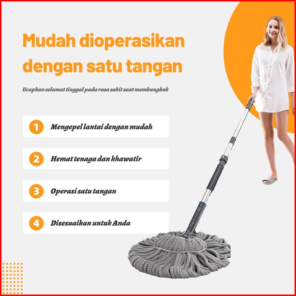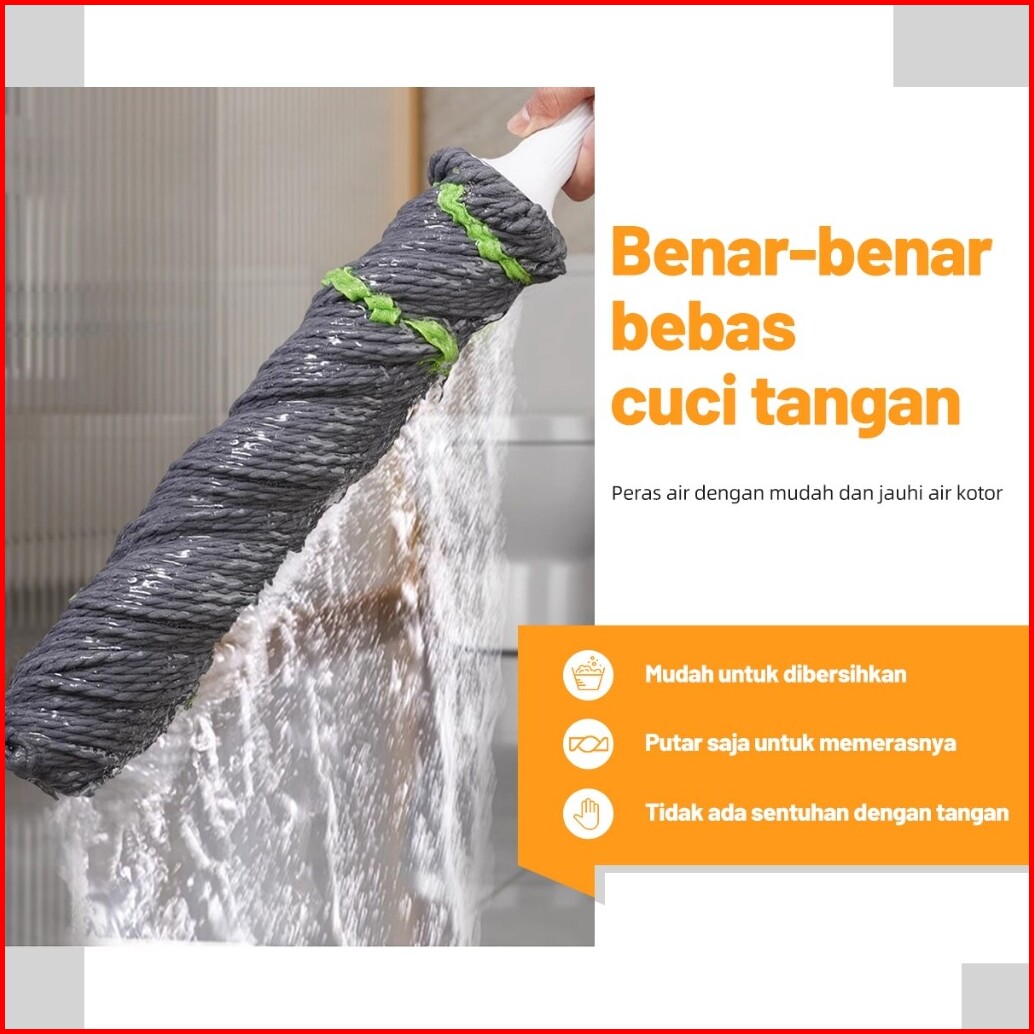Kukee Pel Lantai Putar Stainless Steel Otomatis Twist Mop Microfiber Daya Serap Tinggi Lepas Pasang Kain Pel Peras Putar