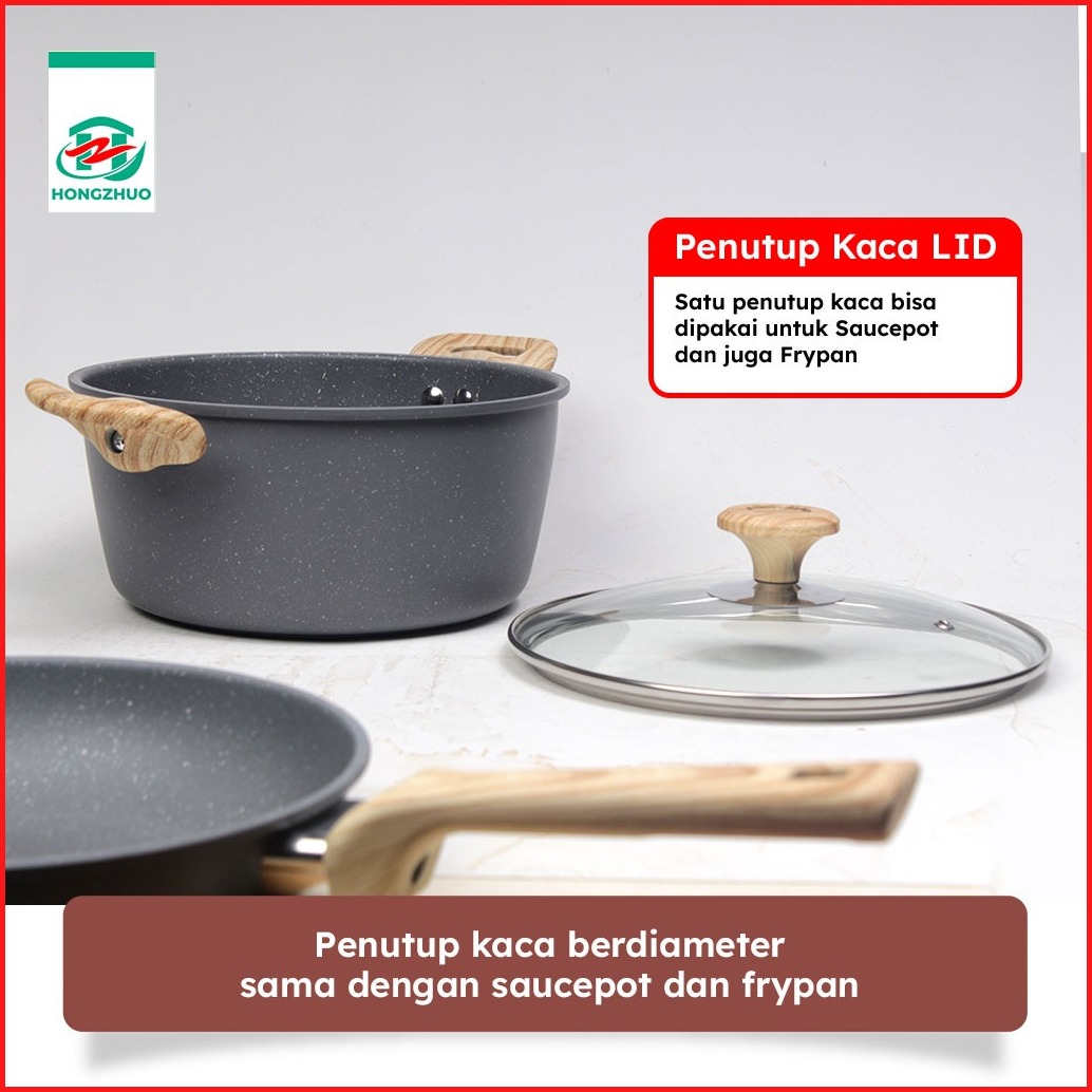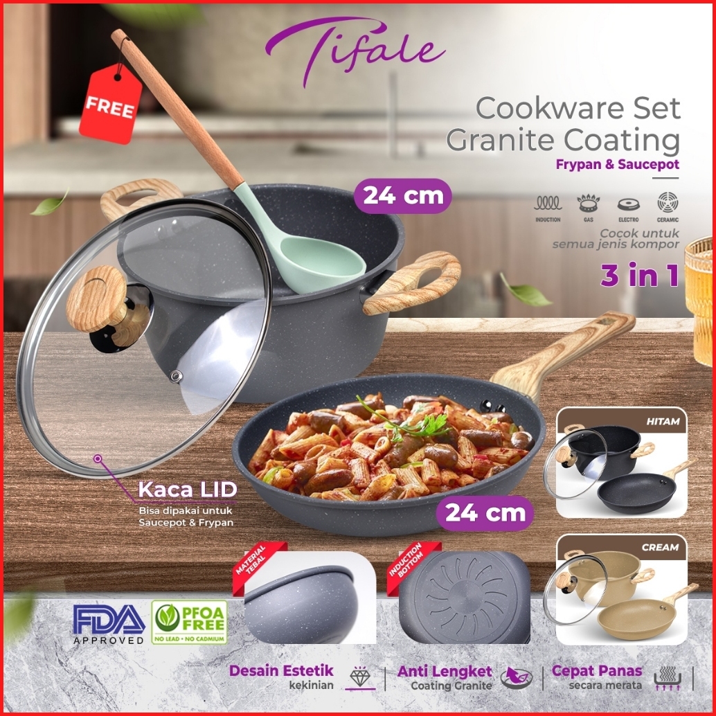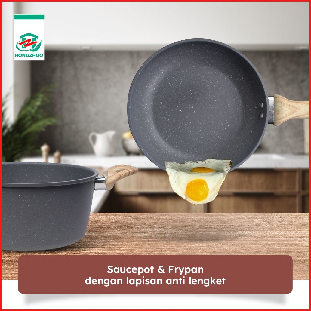 Hongzhuo By Tifale Celeste 3in1 Set Dark Grey Granite Casserole Frypan Saucepot 24cm Anti Lengket