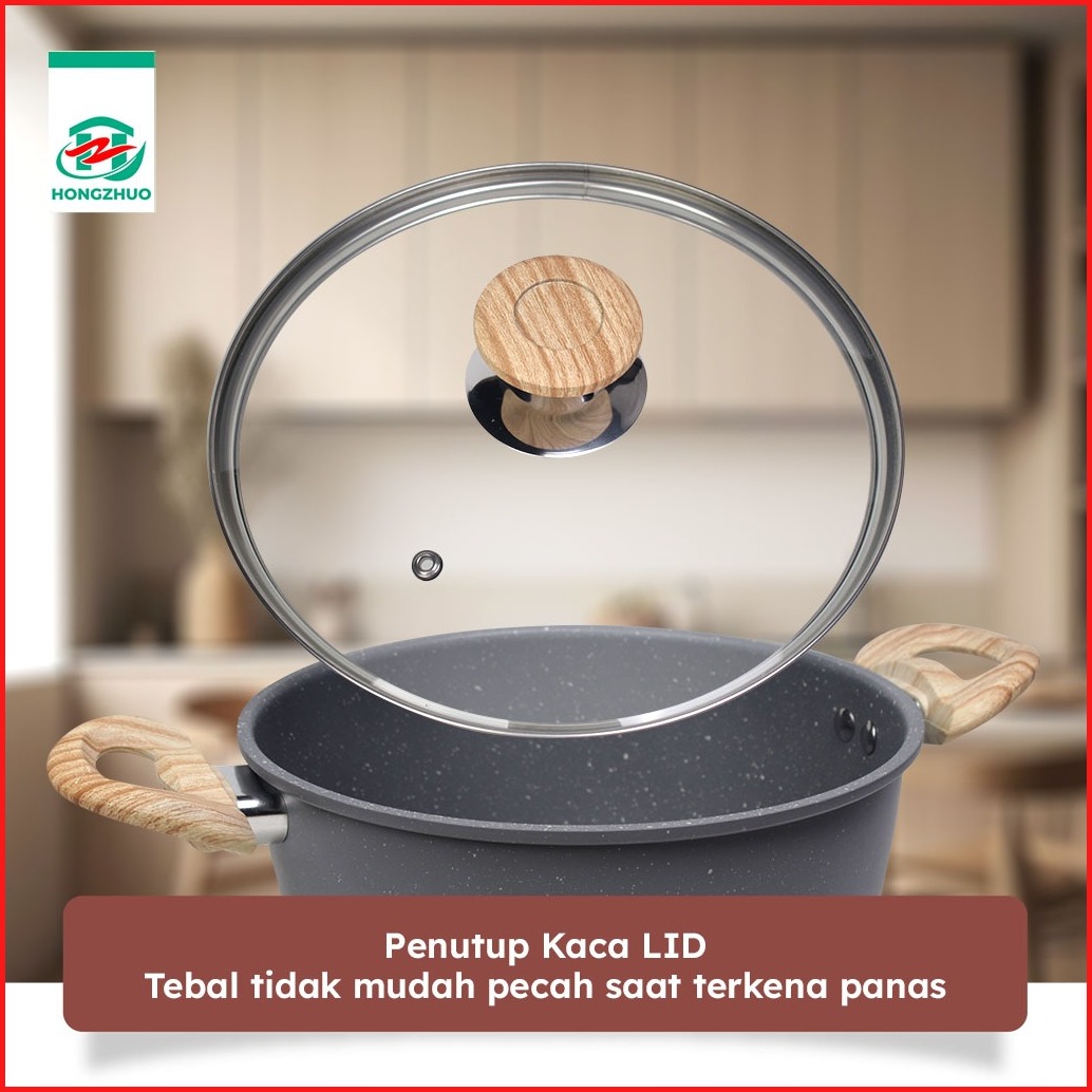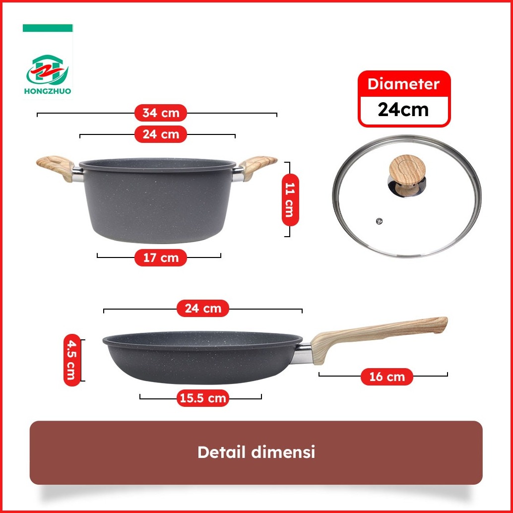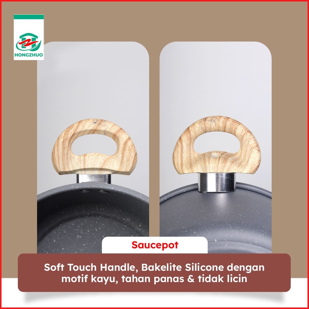 Hongzhuo By Tifale Celeste 3in1 Set Dark Grey Granite Casserole Frypan Saucepot 24cm Anti Lengket