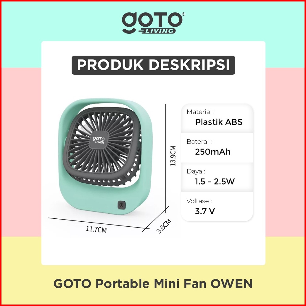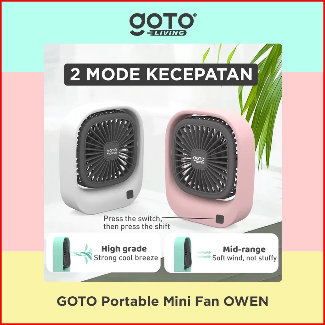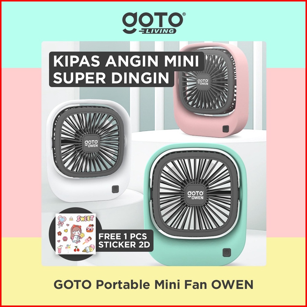 Goto Owen Mini Fan Kipas Angin Kecil Meja Duduk Portable Usb Charger