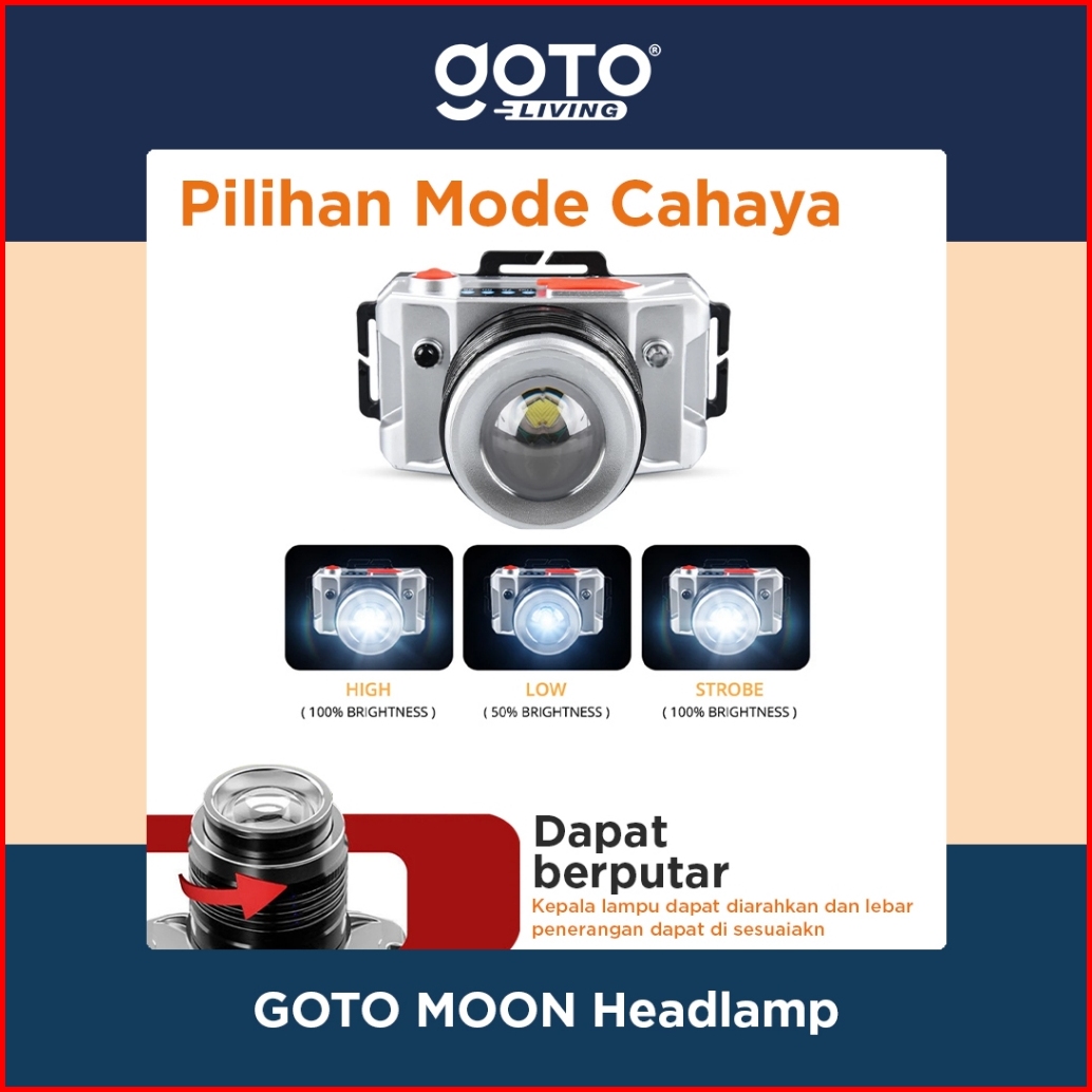 Goto Moon Headlamp Lampu Senter Kepala Camping Led Light Cas Outdoor
