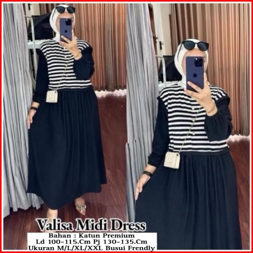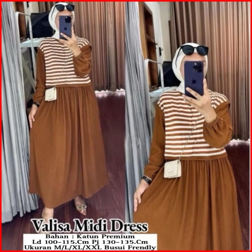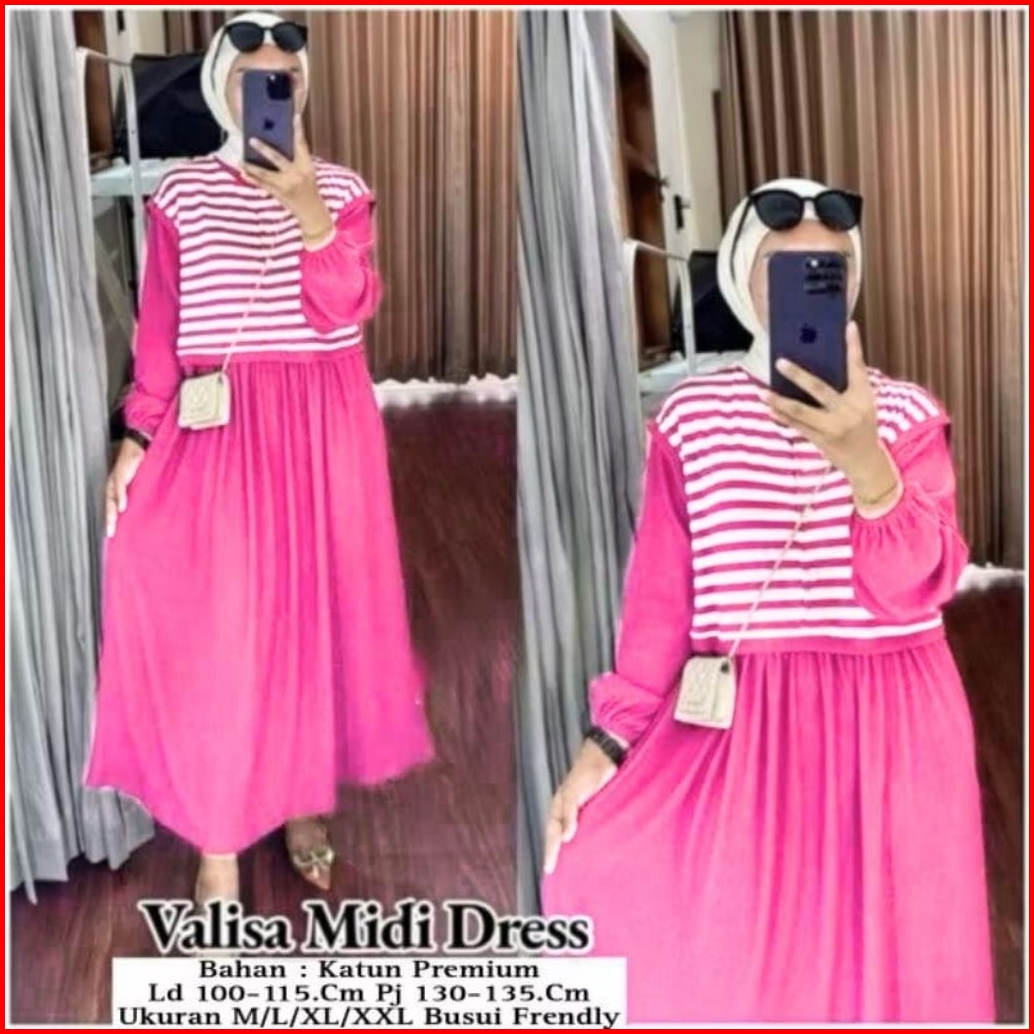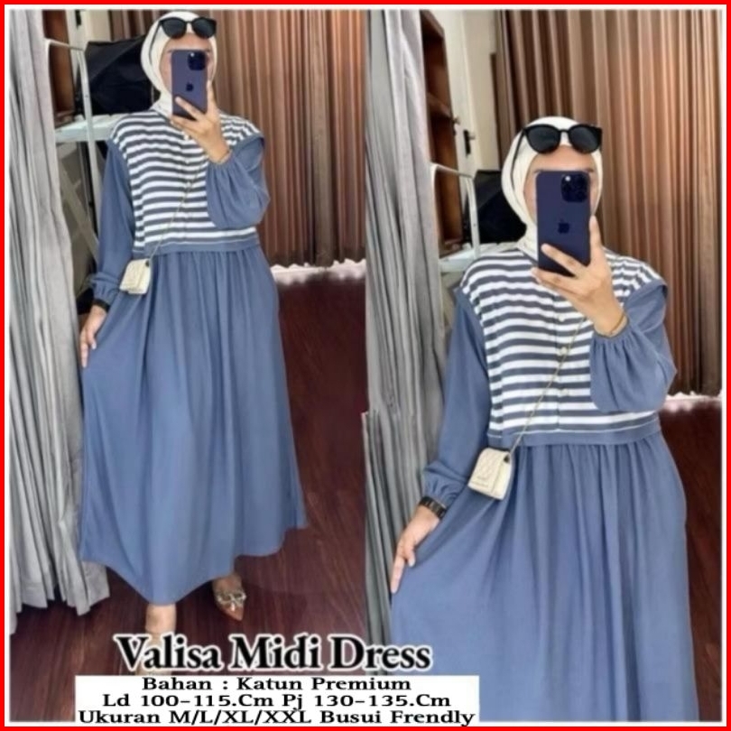 Valisa Midi Dress Gamis Salur Gamis Katun Premium Gamis Midi Dress Polos Gamis Lebaran Terbaru Gamis Simple Elegan Gamis