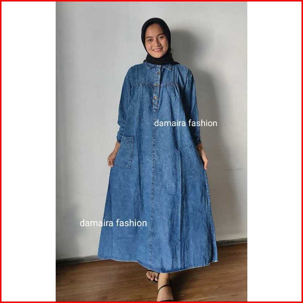 Hanami Jumbo Ld 120 Cm Midi Dress Jeans Tunik Gamis Big Size