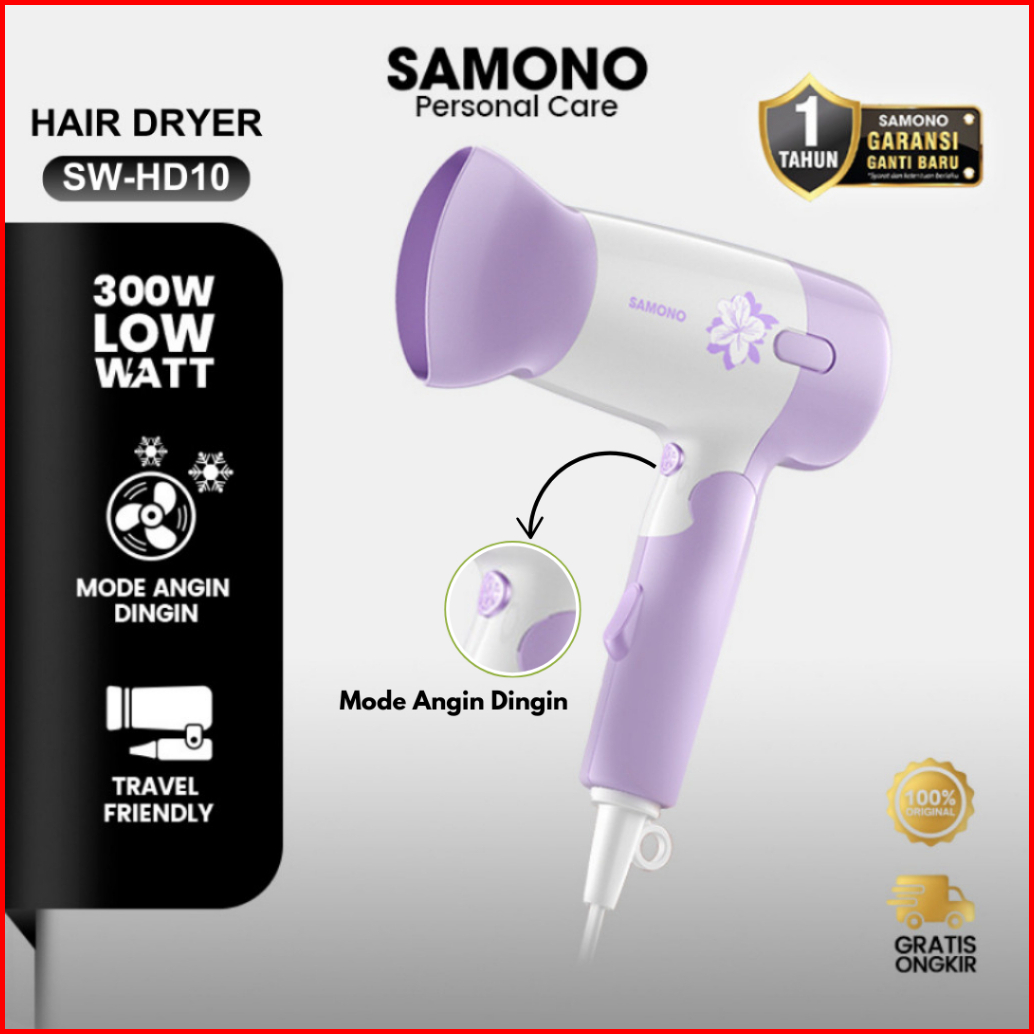 Samono Hair Dryer 300 Watt Mode Angin Dingin Travel Friendly Garansi 1 Tahun Ganti Baru Sw-hd10