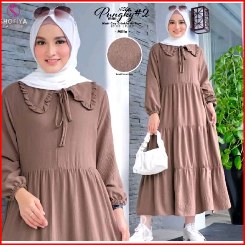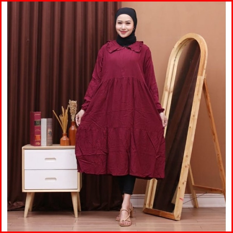 Midi Dress Bahan Rayon Ori Premium Terbaru 2022 Midi Dress Busui Dress Susun Bahan Rayon Daster Arab Busui Ld 110 Muat B