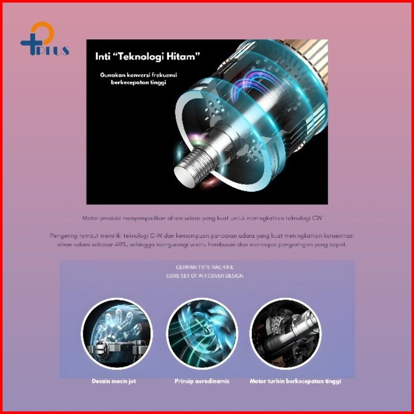 Pplus Hair Dryer Profesional 800w 3 Suhu Ion Negatif Pengering Rambut