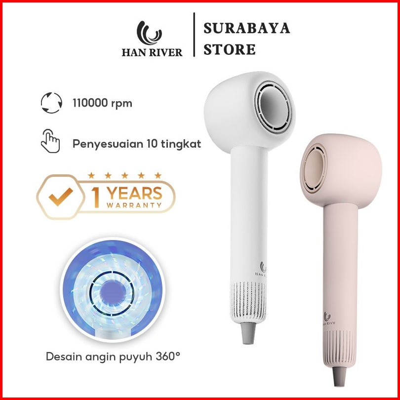 Han River Hair Dryer Low Noise 110000 Rpm High Speed Hair Dryer 2 Mins Fast Drying Hrhd07