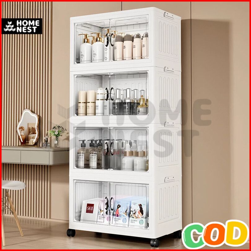 Rak Kabinet Susun Lipat Kapasitas Besar Tutup Transparan Lemari Plastik Rak Buku Serbaguna