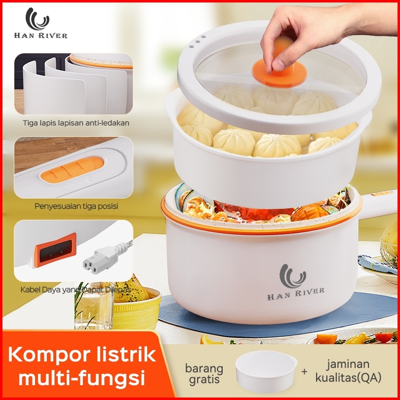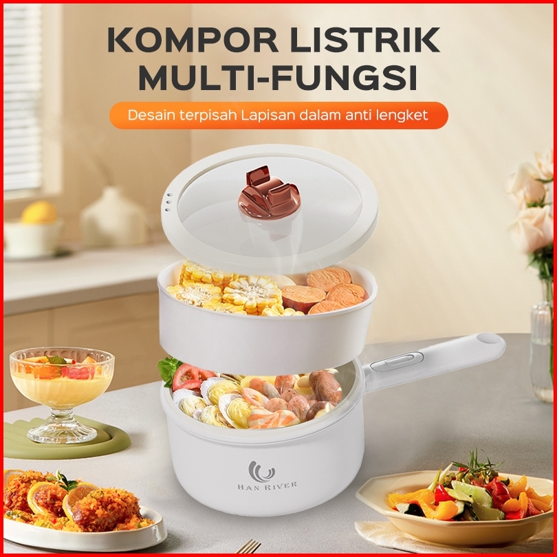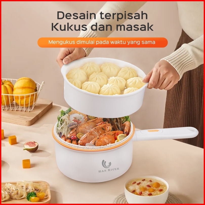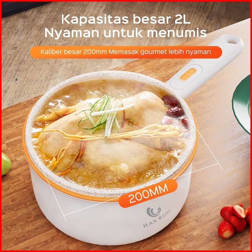 Han River Panci Listrik Hrdhg01 Fry Pan Electric 2in1 2l Panci Listrik Multifungsi Panci Listrik Kecil-putih