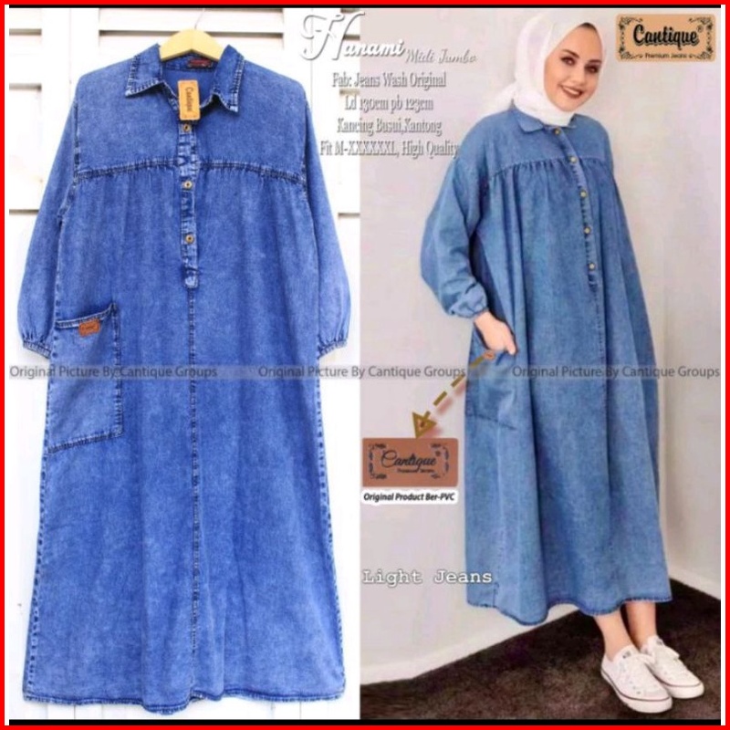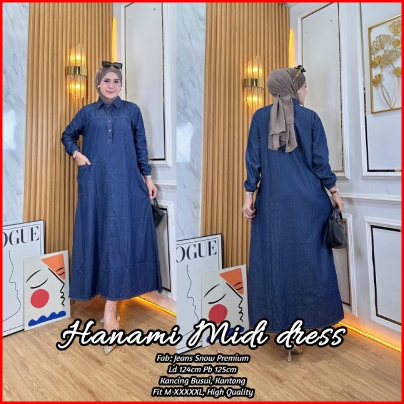Hanami Midi Dres Jeans Wanita Cantik Ld 110 Pj 122