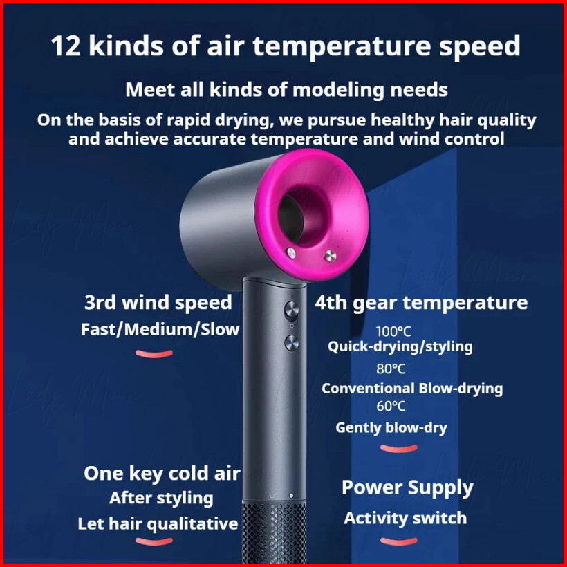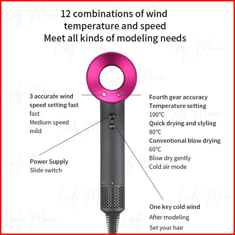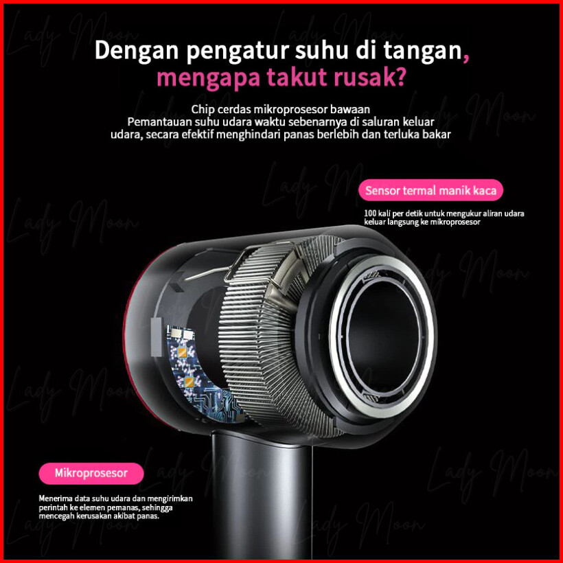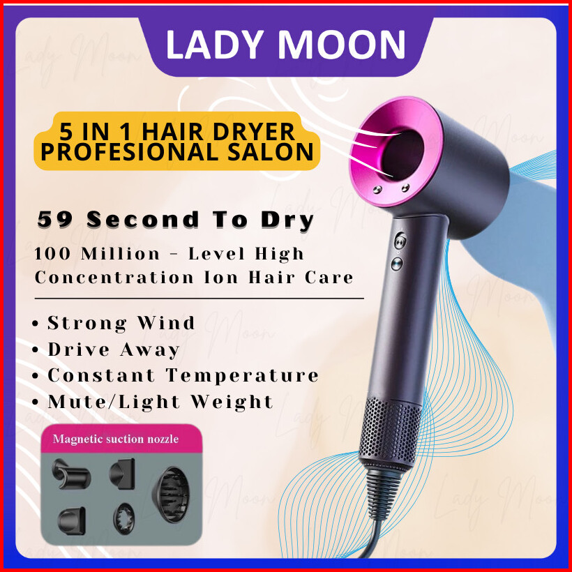 Lady Moongaransi 1 Tahunhair Dryer Salon Profesional 1600w Dengan 5 In 1 Lima Aksesoris Pengaturan Suhu Udara Panas Ding