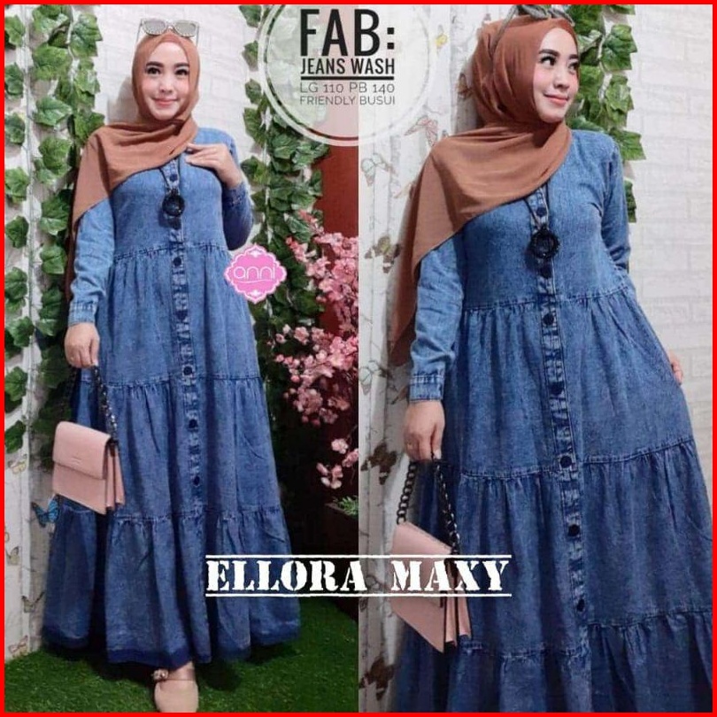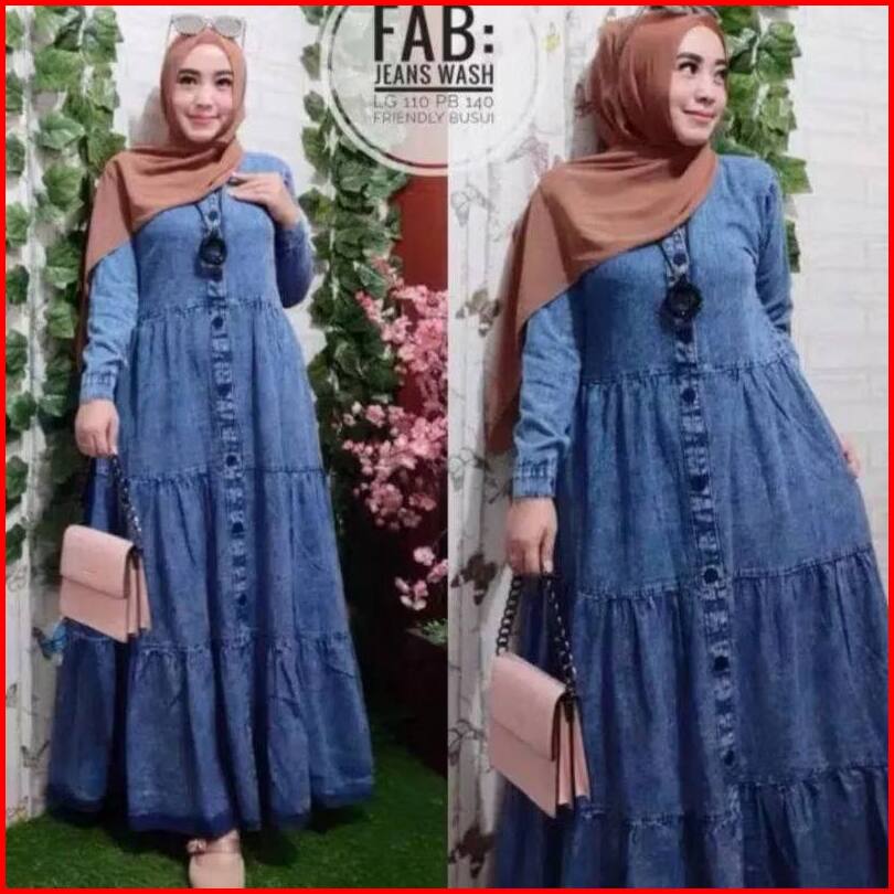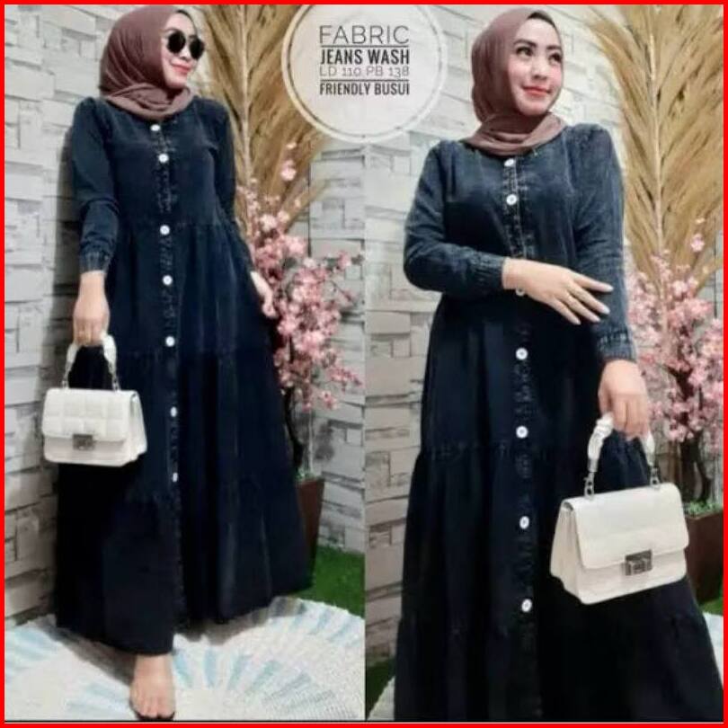 Amanda Maxy Gamis Jeans Baju Gamis Dress Susun Muslim Gamis Denim Wanita Terbaru 2022 Baju Lebaran Gamis Lepis Modern Fa