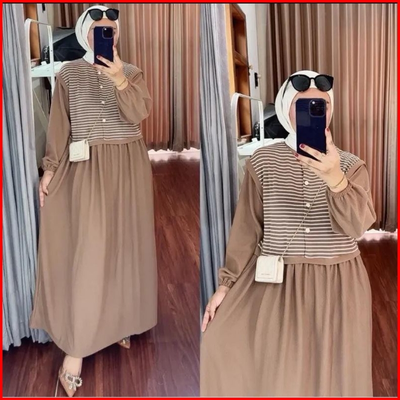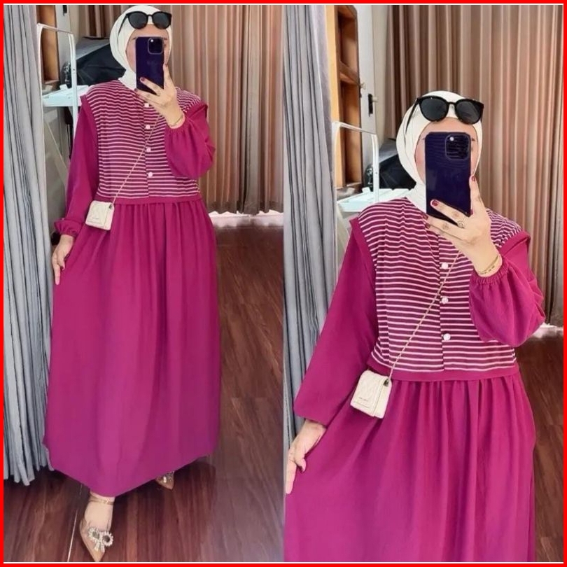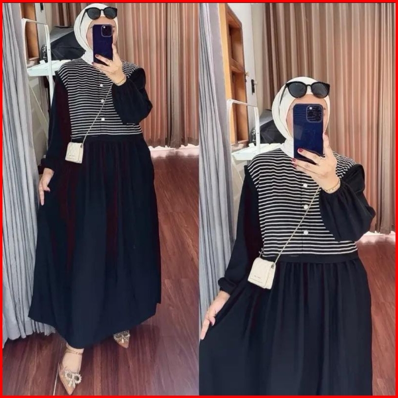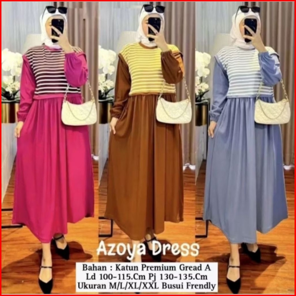 Azoya Midi Dress Knit Salur Cotton Premium Gamis Wanita Kekinian Midi Dress Wanita Terbaru Jumbo