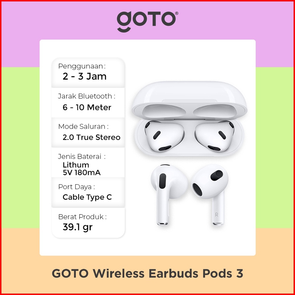 Goto Pods 3 Tws Earphone Headset Earbuds True Wireless Bluetooth