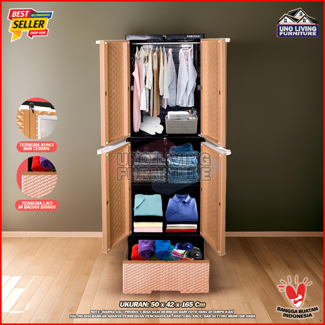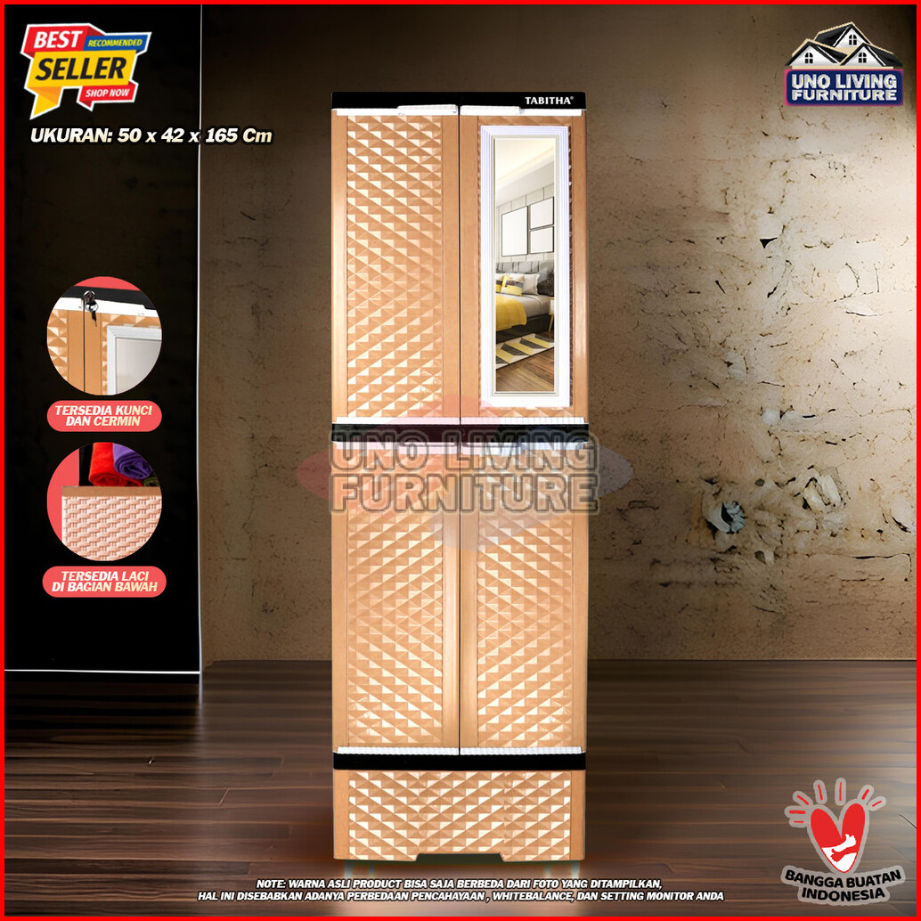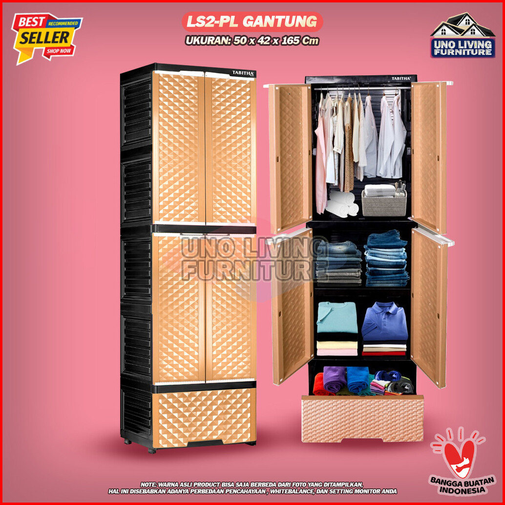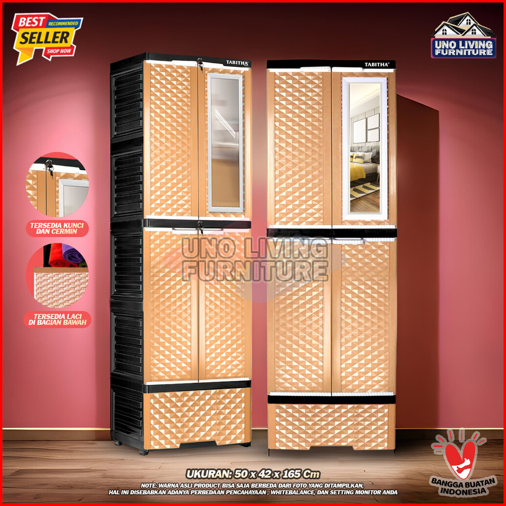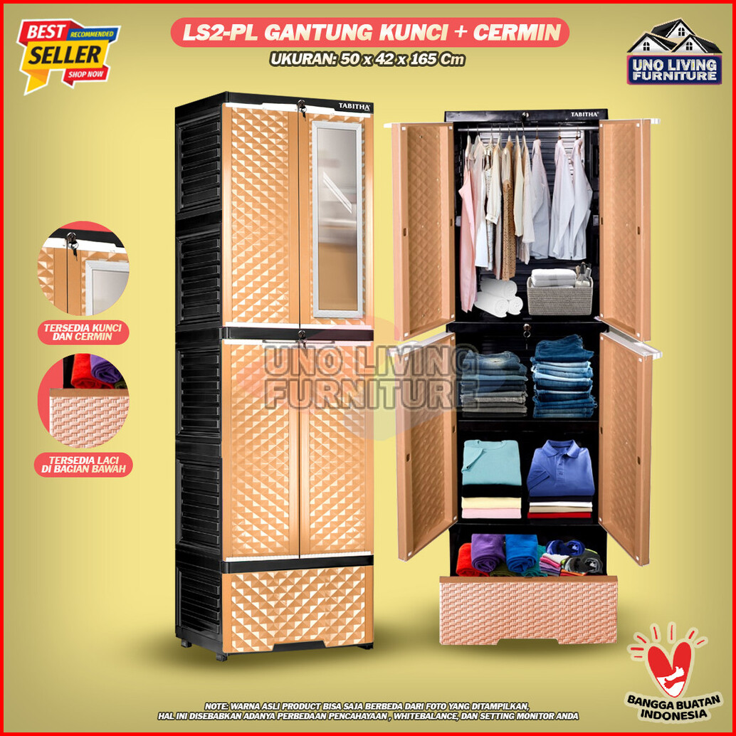 Lemari Pakaian Plastik Gantung Dan Laci Lemari Pintu Rak Serbaguna Ls2pl Tabitha Dengan Cermin