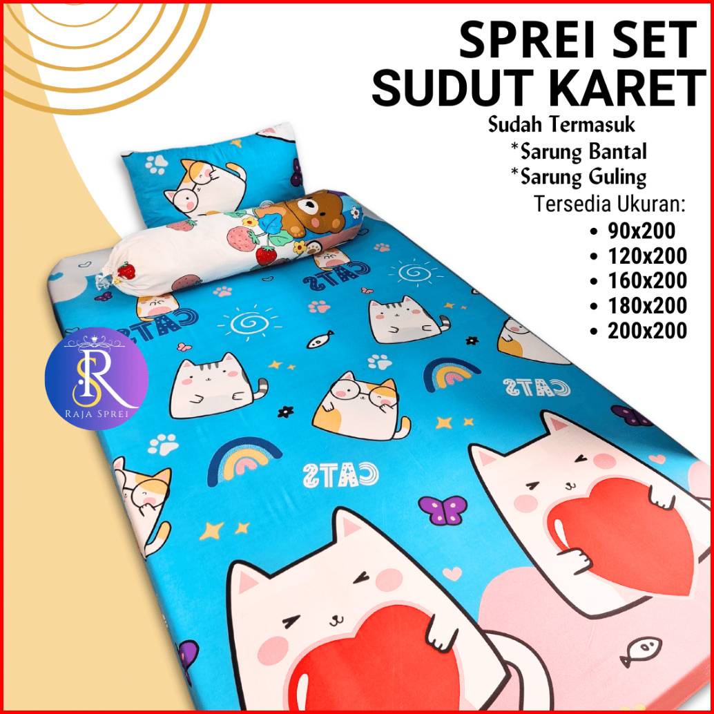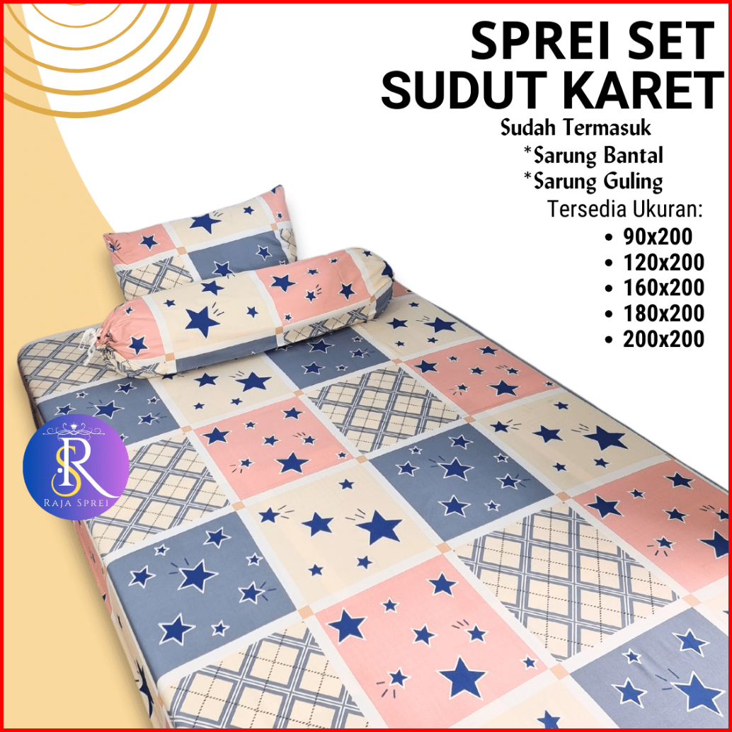 Sprei Sudut Karet Set Bantal Guling Ukuran 180x200 160x200 120x200 90x200 Motif Karakter Bintang