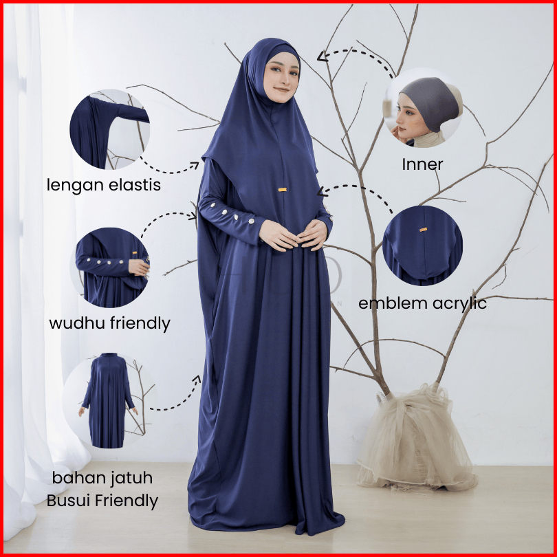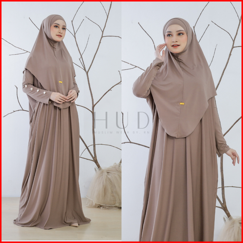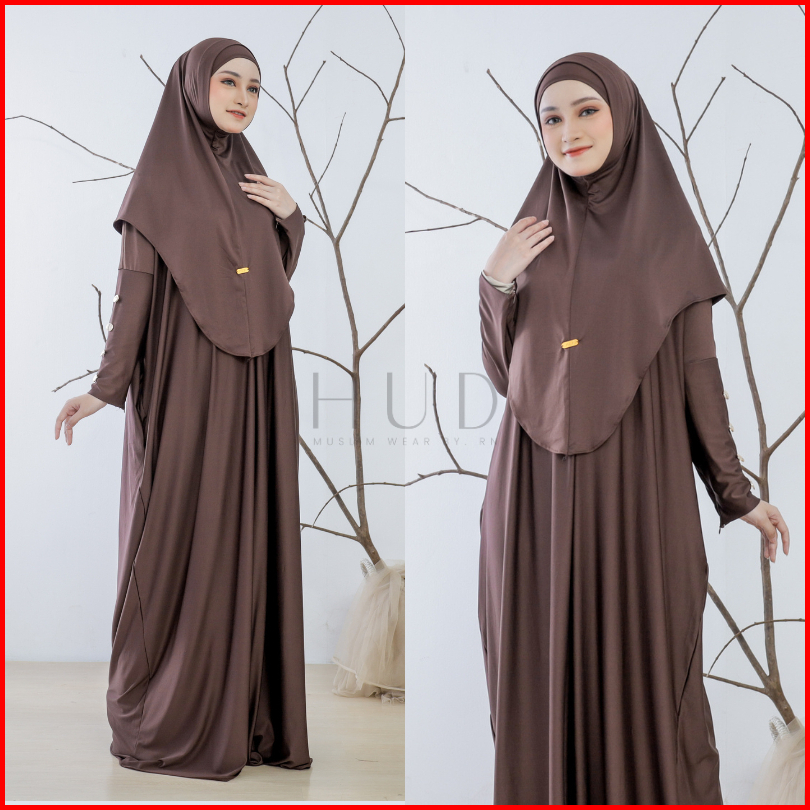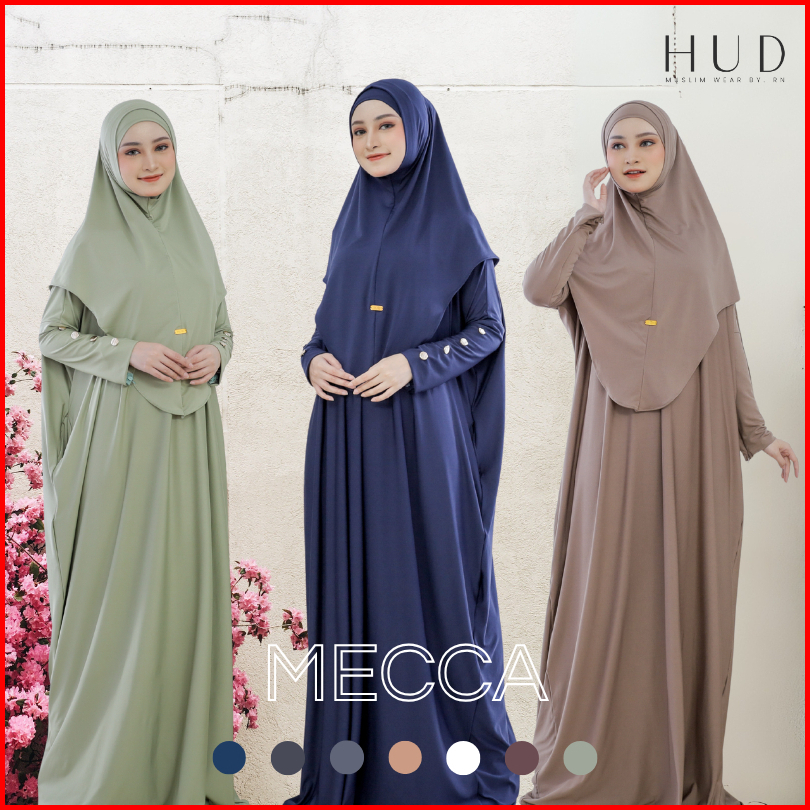 Gamis Abaya Set Hijab Batwing Wanita Muslimah Syari Umroh Busui Friendly Free Inner - Mecca By Hud