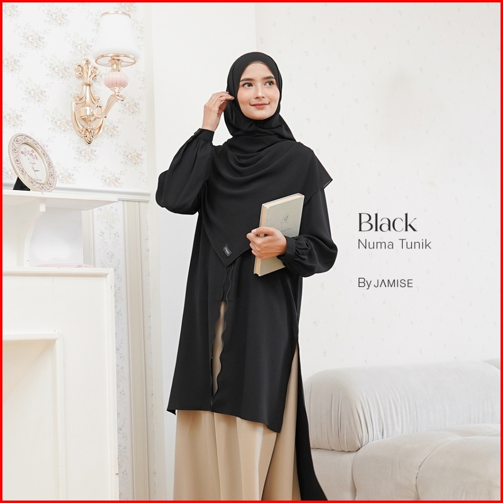 Jamise Numa Tunik Embroidery - Atasan Tunik Wanita Lengan Panjang Pinggiran Bordir